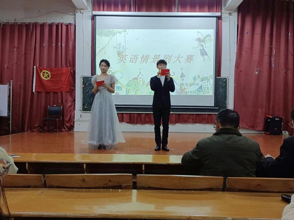 为丰富师生校园生活,增加外国语学院艺术气息,为同学们提供一个展示自我的平台。外国语学院于2021年12月21日19:10在跬步楼1115教室举办英语情景剧大赛决赛。参与此次活动的成员有外国语学院党委书记黄柏萍、副书记刘佳萍,团委书记冷全宝、副书记雷欣宇,书记助理洪婕、李桂帆,学生会主席孙世睿、副主席舒正翔、郭梅玉,办公室主任林安琪,各位参赛选手与观众。
