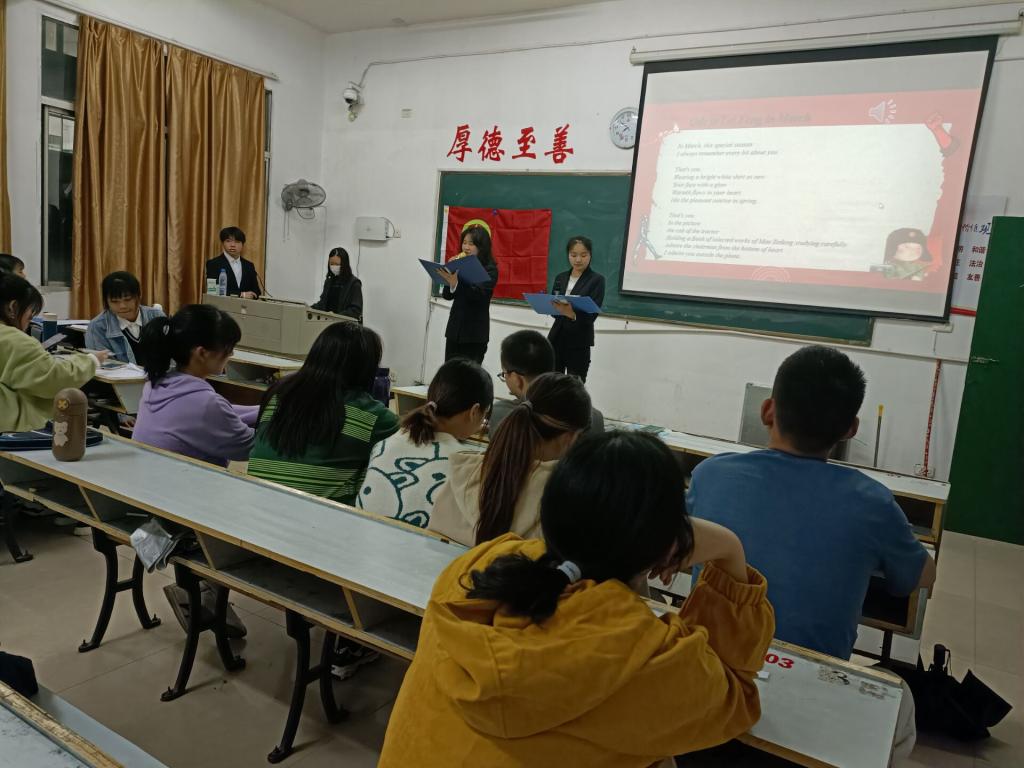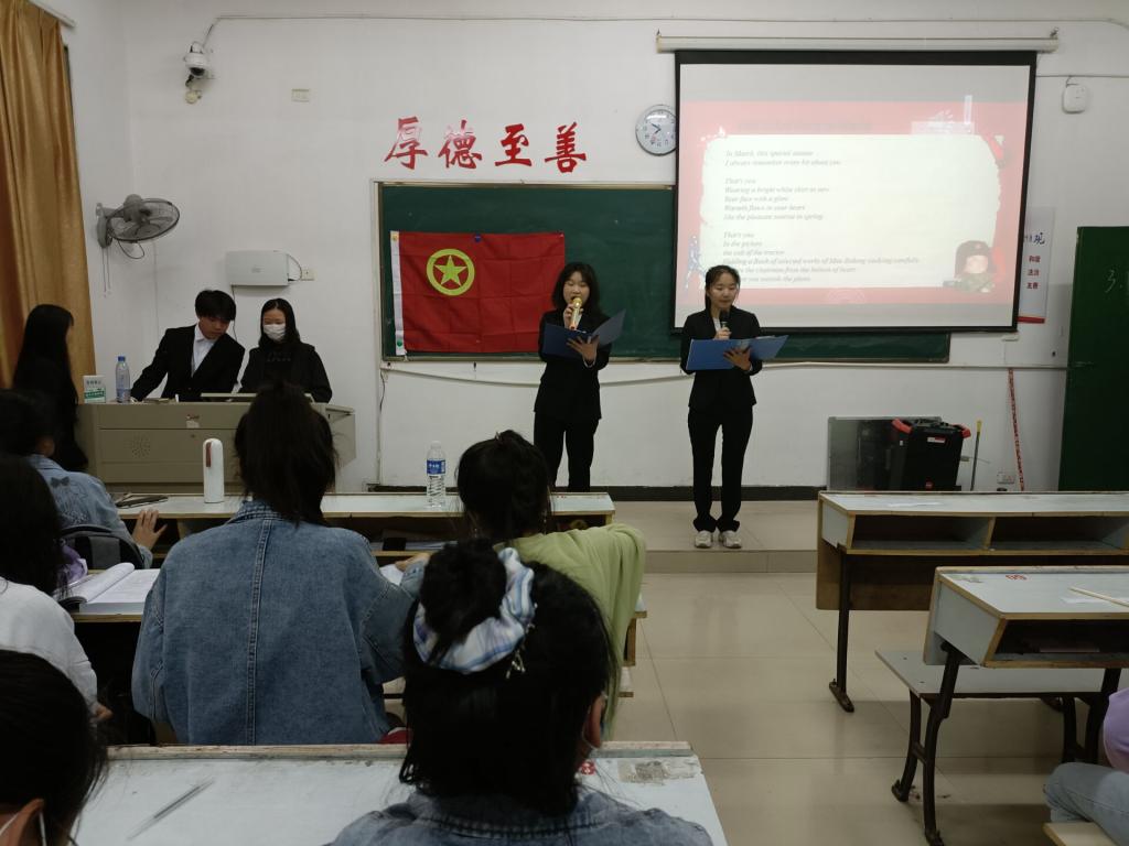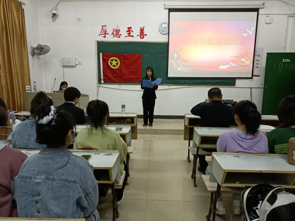 为了对雷锋同志表达敬意,歌颂、弘扬雷锋精神,同时更加激励着学生以实际行动践行雷锋精神,外国语学院于3月17日晚19点在英华楼3304举办“学雷锋诗歌朗诵”决赛。参加此次活动的人员有外国语学院党委副书记刘佳萍、团委书记冷全宝老师、学生分会主席孙世睿、学生分会团委雷欣宇以及各部门部长和20、21级观众。
