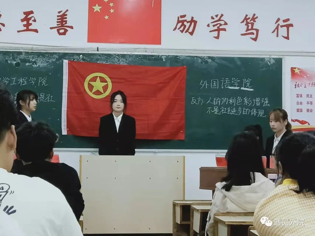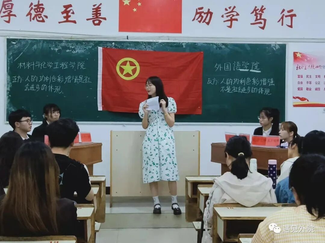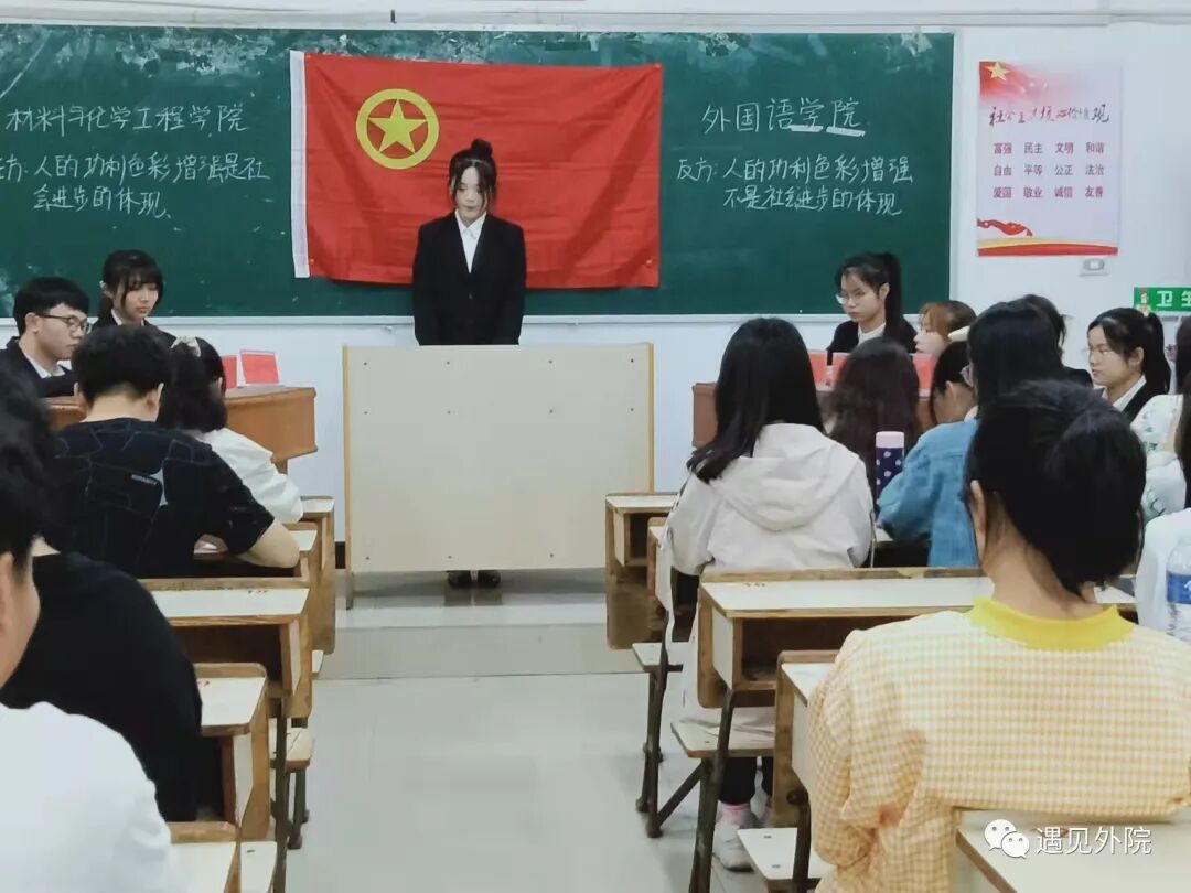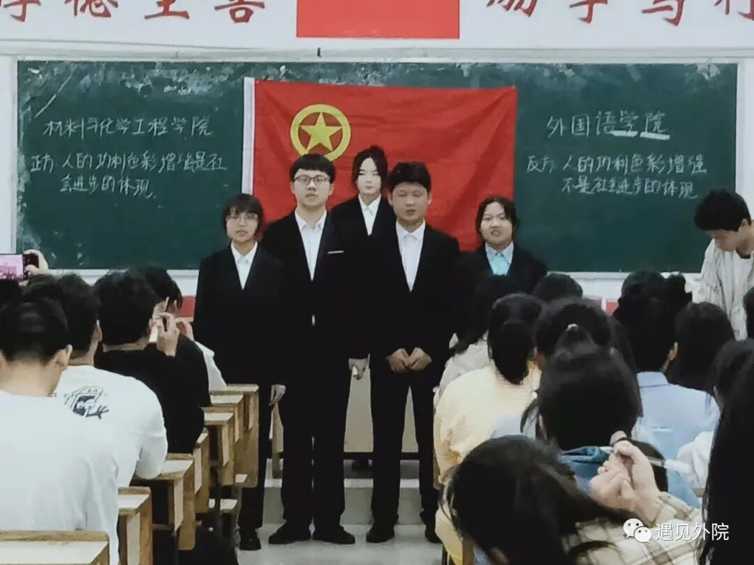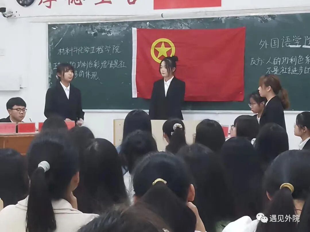 为了建设我院优良学风,丰富同学们的课外活动,培养大家的思辨能力和语言表达能力,外国语学院与材料与化学工程学院于2022年3月13日19:00在鼎新楼2313教室举办辩论赛之友谊赛。出席此次活动的嘉宾有外国语学院辩论队队长舒正翔、学生会副主席郭梅玉,材料与化学工程学院辩论队队长李文浩、副队长罗伟彬。