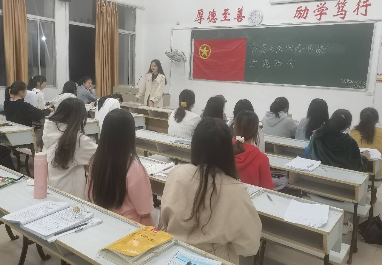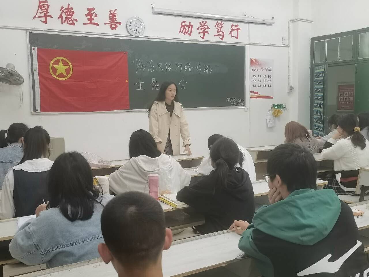 为了加强同学们的安全防范意识,防止大学生受电信诈骗,将犯罪分子诈骗手段进行分类。外国语学院20英本3班于2022年4月7日19:00在英华楼3309召开“防范电信网络诈骗安全教育”主题班会。此次班会由班长李双凤主持,全班同学参与。