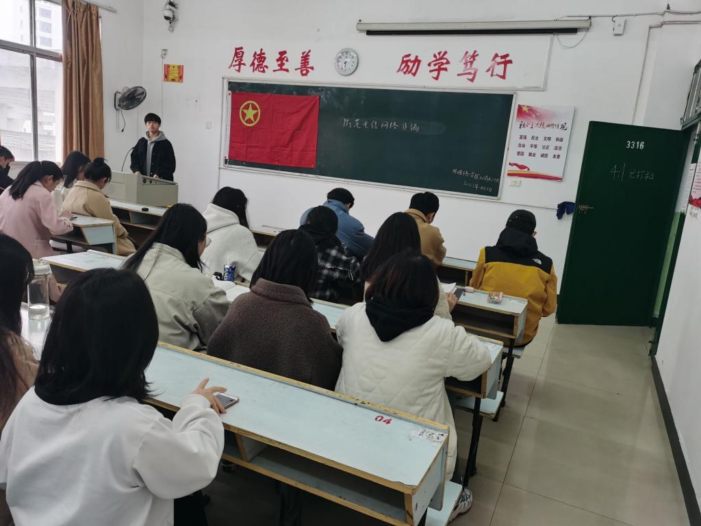 随着社会的发展,信息技术的进步,各种诈骗现象也成为社会日益突出的问题。尤其是一些诈骗分子,将目标转向学生。学生容易受到他人别有用心的欺骗,而且对于大人所说的话都容易产生一种信赖和顺从的心理。在面对成年人诈骗的情况时,难以有效作出清晰的判断。所以,为了使学生熟悉生活中常见的诈骗形式,增强学生在生活中遇到诈骗现象灵活应对的防范意识。外国语学院20商本3班于2020年4月月6日在3316举班了防范电信网络诈骗主题班会,此次班会由班长何浩文主持,全班同学参与。
