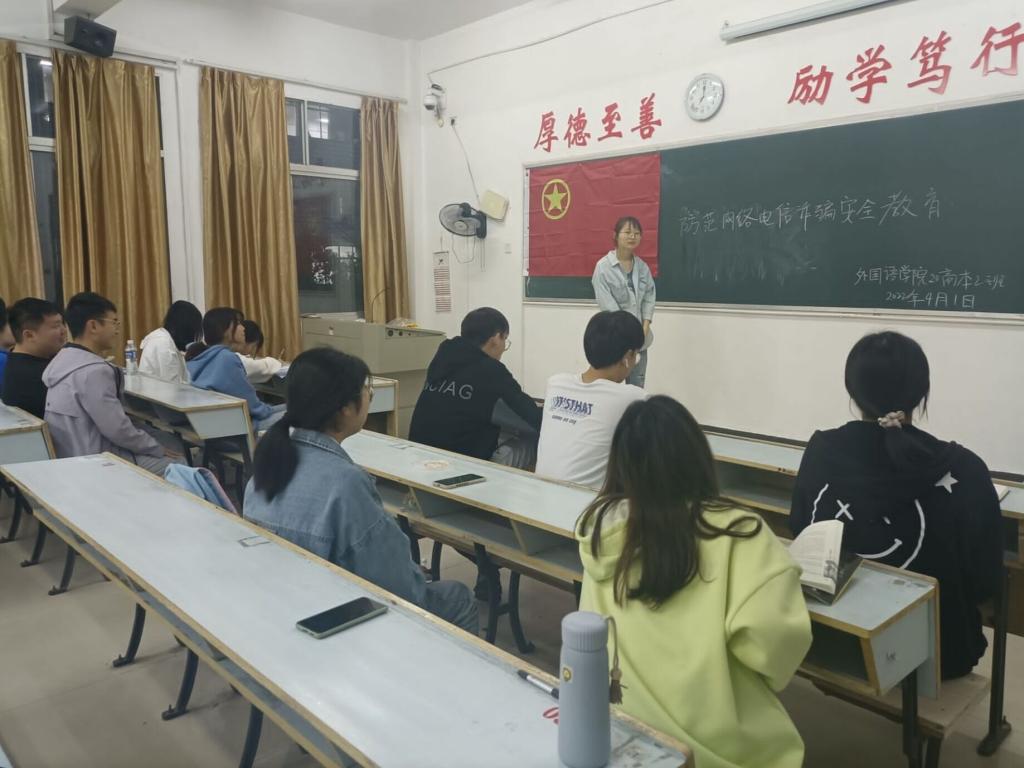 为增强同学们的安全防范意识和提高自护自救能力,减少网络安全事故的发生,促使同学们安全健康地成长,外国语学院20商本2班于2022年4月1日19:45在英华楼3517召开“防范网络电信诈骗安全教育”主题班会,此次班会由班长郭仪主持,20商本2班全班同学参与。