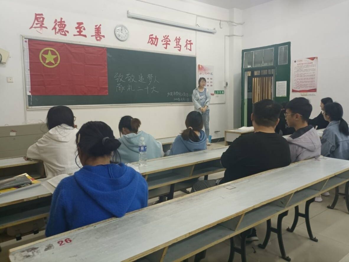 为深入贯彻落实习近平新时代中国特色社会主义思想和党的十九大及十九届历次全会精神,充分调动同学们在校学习的积极性,外国语学院20商本2班于2022年4月1日19:00在英华楼3517召开“致敬追梦人,献礼二十大”主题班会。此次班会由班长郭仪主持,20商本2班全班同学参与。