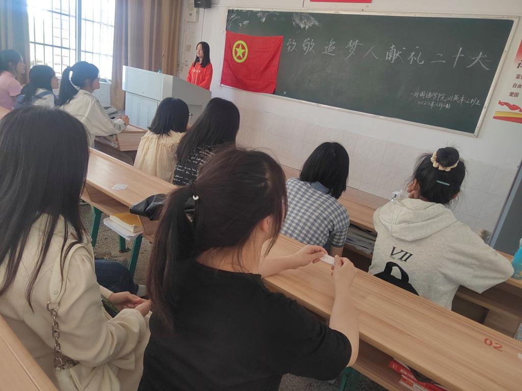 为了大力弘扬爱国主义精神,传承中华民族传统美德,让爱国主义情怀深植在同学们心中。外国语学院21英本2班于2022年3月8日19:00在英华楼3508召开“致敬追梦人献礼二十大”主题班会。这次班会由副班长徐江萍主持,21英本2班全体成员共同参与。