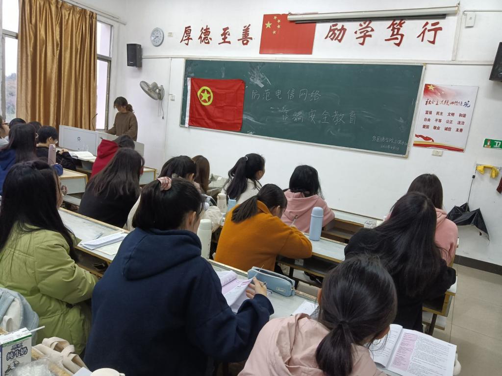 为了提高同学们的安全意识和了解相关的电信诈骗方法。为此,外国语学院21英本3班于2022年4月1日7:00在英华楼3509召开“防范电信网络诈骗安全教育”主题班会,此次活动由班长熊莉主持,21英本3班全体同学参与。