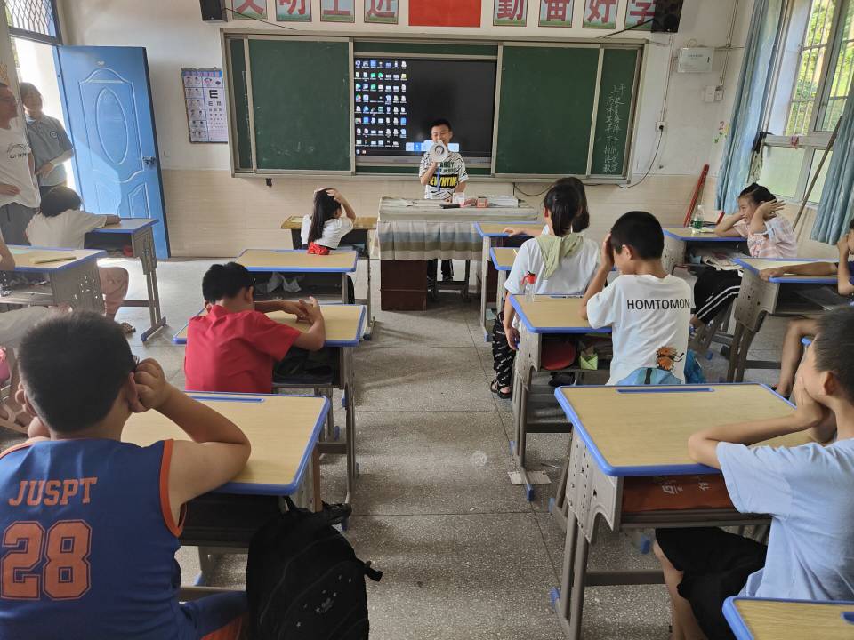 早上起床洗漱完成,打开房门,迎面而来的是朝阳,太阳刚从东山薄雾中露出脸,射出道道强烈金光,像是在大声欢笑那层薄云的不堪一击。也为支教团的同学们扫去了昨日疲倦,新的一天开始啦。有第一天的经验,后勤部成员们熟练了做饭流程,很快就将香喷喷的早饭端上了饭桌给大家食用,一切都井然有序。吃完早饭,小朋友依旧来的很早,为了活跃气氛,老师们便与他们开始了课前的小游戏,沉闷的气氛一下子活跃了起来。安顿好课前所有的事务,伴着老师的到来,第二天的课程正式开始。在历史宣讲课上,老师很好的运用了小朋友的好胜心理,将班级同学分为几个部分来开展课程,营造了更加活跃的课堂气氛。在课上,老师先带着孩子们一起回顾了昨天学习过的内容并采用了举手复述的形式,让孩子们在竞争的同时加深了对知识的印象。复习完毕后,便开始了今日新内容,课堂上老师思路清晰、环节紧凑、重难点突出,在座的学生也积极的参与在课堂中,课堂效果良好。在音乐课上,今天用到了一位“特邀嘉宾”竖笛,为了维持良好的课堂秩序,音乐老师在课前先为孩子们制订了几个规则,分发完工具后,教学正式开始。因为是同学们第一次接触,所以老师采取了图片展示与一对一辅导教学相结合的方法来展开课程。经过一系列的教学后,并邀请同学上台展示所学成果,孩子们兴致满满。