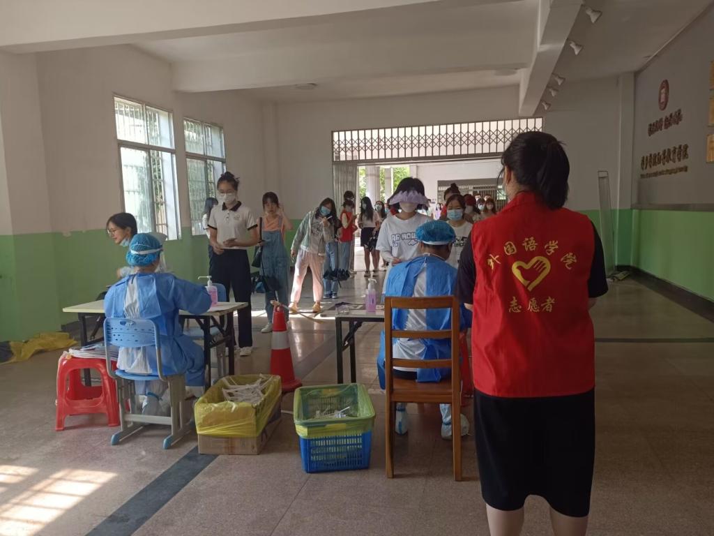 为了顺应国家疫情防控要求,维护校园核酸检查秩序。外国语学院于2022年9月3日上午9:00-10:30在英华楼一楼开展协助全员做核酸活动。参加此次活动的有外国语学院学干志愿者和外国语学院全体成员。