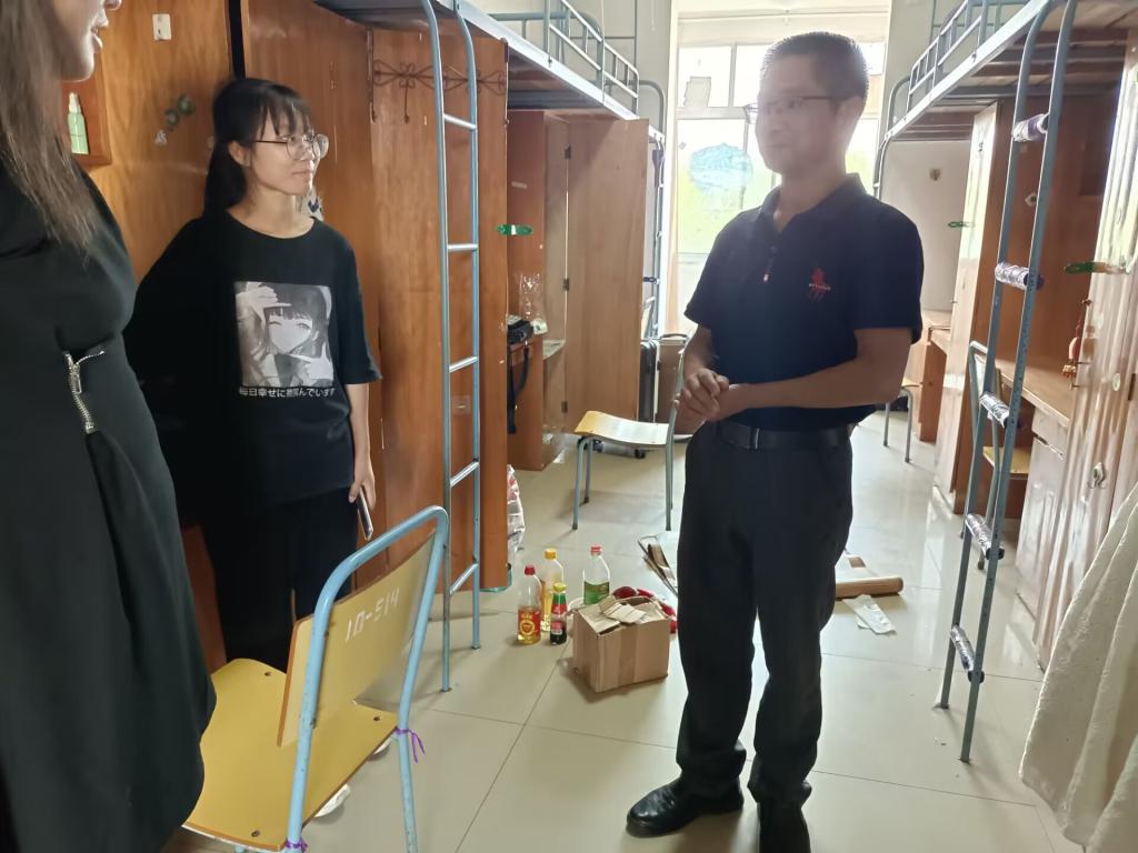 每到一间宿舍,刘书记都详细了解新生基本情况。同时对新生入校后的学生管理、生活服务、学风建设、人生理想等方面进行了亲切交谈。在慰问活动中,刘书记对新生提出几点要求:一是服从学校管理、严格要求自己;二是刻苦学习技能本领,从而在学校度过一个无悔的青春岁月。亲切的话语让同学们感受到了学院领导对他们的关心与爱护,他们也不再拘谨,开始热情地与领导和学姐们畅谈了自己对大学的憧憬与梦想、对大学的理解与感悟。