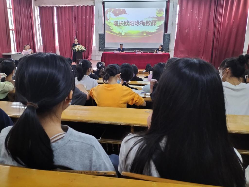 为了营造浓厚的开学氛围,增强师生责任感和使命感,为新学期创造一个良好的开端,外国语学院于2022年9月23日16:30在跬步楼1115教室举办2022级新生入学典礼。出席此次活动的成员有外国语学院院长欧阳咏梅、党委书记刘佳萍、副院长卓玲、辅导员冷全宝、何宇、钟倩、赖雅琼、李姿菲,老生代表20商本2班孙世睿、新生代表22商本1班邱佳伟,22级班级助理辅导员以及全体新生。