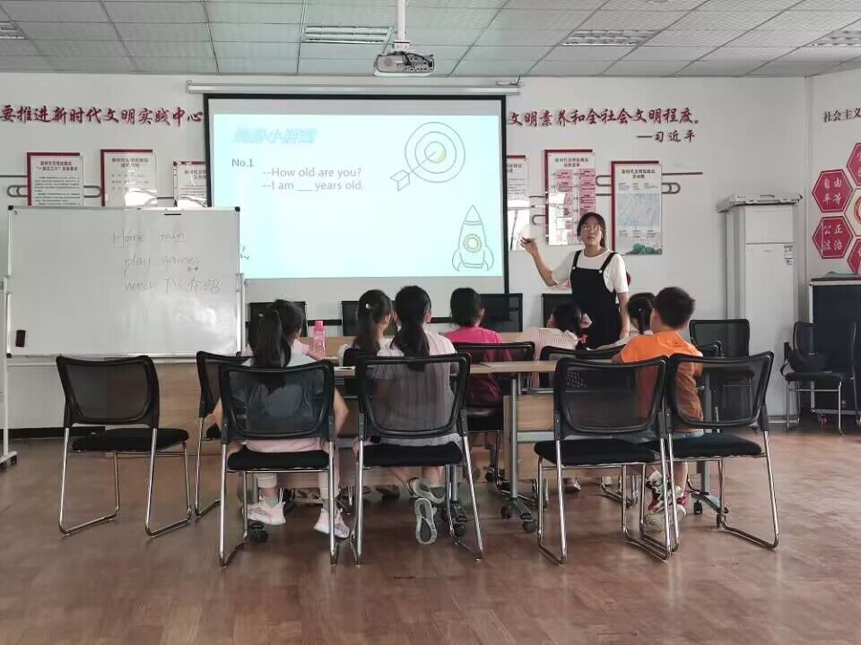 早上8:20,志愿者们便整装待发,满心欢喜地坐上了前往社区的小车。到达目的地,在社区书记的带领下她们见到了前来上课的小朋友们,他们汇聚一堂对今天来上课的“小老师们”充满了好奇。简短的自我介绍后,志愿服务活动正式开始。在本次教学过程中,志愿者们将所有的孩子根据年龄进行了分班教学,课程历时两小时,总分为两小节。在第一小节课上,志愿者们向同学们讲解了事先准备好的英语课程内容,他们根据同学们不同的英语基础,本着以培养兴趣为主的想法,适宜的烘托了良好的英语学习环境。在丰富的游戏式教学中又结合了日常的生活经验,减轻了小朋友们学习英语的压力,整个教学过程都非常的愉悦,孩子们也能做到积极配合。短暂的课间休息后,志愿者们又将三个班的小朋友们都聚集在了一起,开始了娱乐环节,在这里他们以娱乐的模式为孩子们复习上节课所学的英语知识,课堂氛围十分轻松,整个教室都遍布着欢声笑语。在这愉悦的氛围中,这堂课进入了尾声,小朋友的家长也陆续到来,将孩子们接走回家。本次志愿服务活动到此结束。