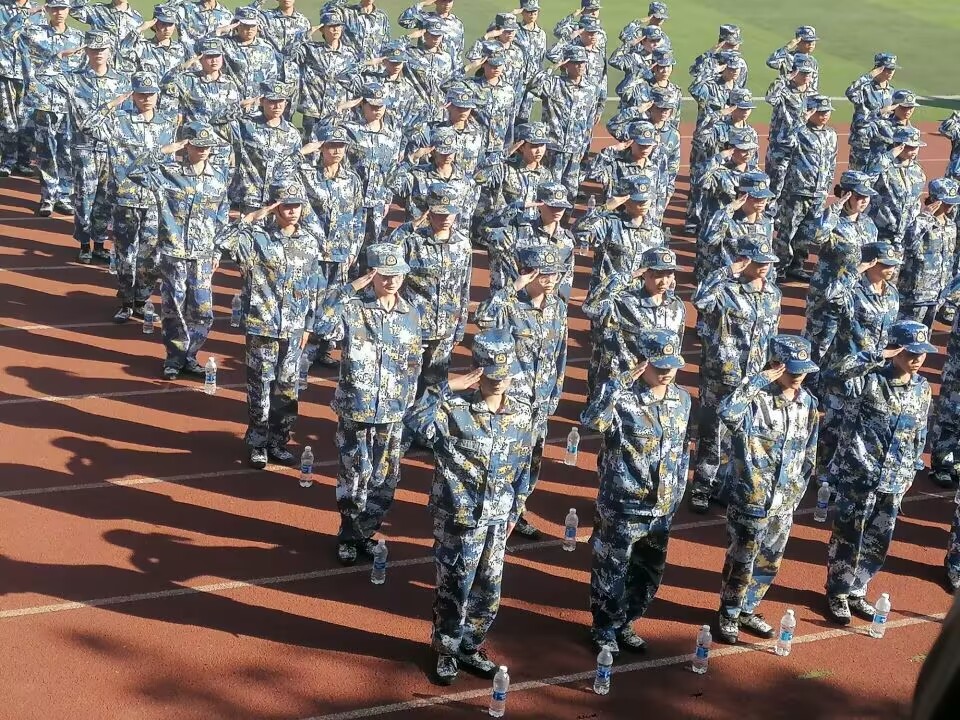在烈日下,脸上的汗水在阳光映射下熠熠生辉,他们挺起头颅面对烈日,象征着他们的毅力与决心。军训不仅仅是一个考验体能的过程,还是一次锻炼耐心与毅力的历程。