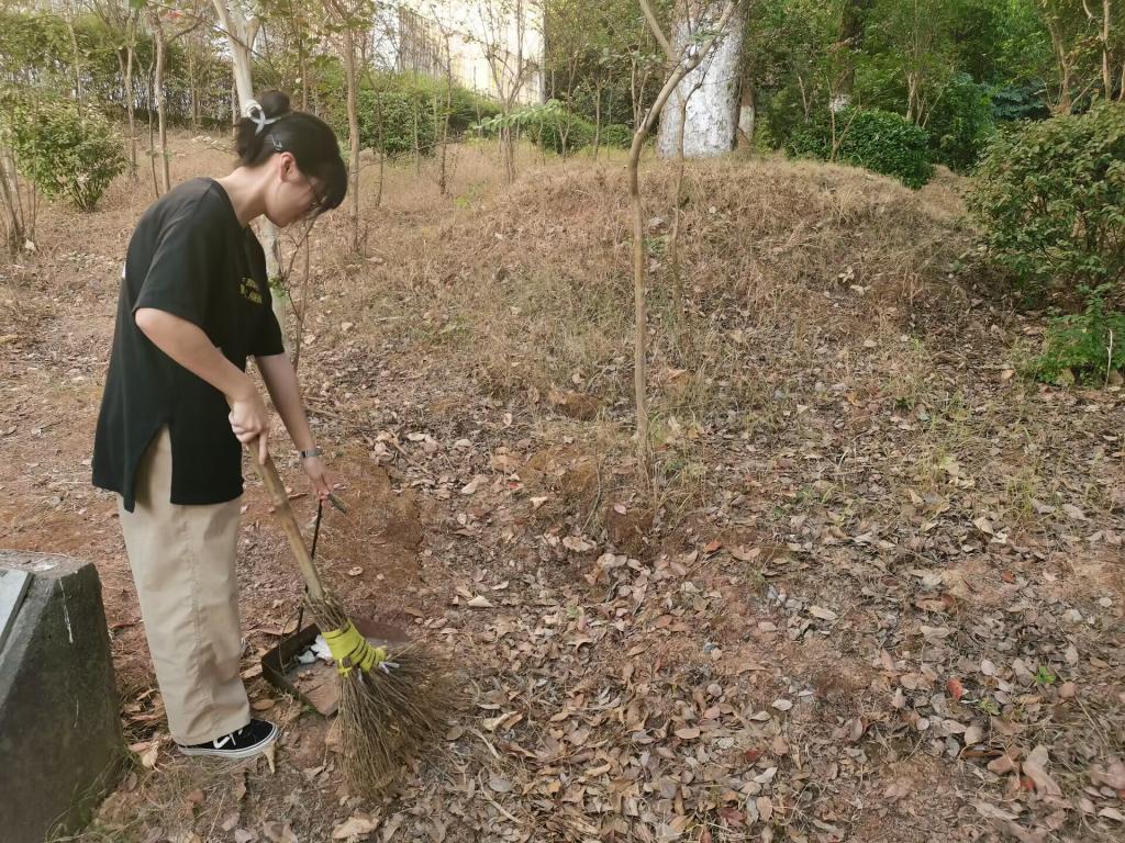 活动开始前,各位成员准时在10栋宿舍楼下集合,并携带扫把、簸箕等清扫工具,为此次的清扫任务提前做好充足准备。到达指定地点后,大家一起行动起来,合理分配协作打扫相对应的区域,将林中的垃圾放进提前准备好的垃圾袋中。在打扫过程中,他们也礼貌提醒路过的同学要保持好林内的环境卫生,不断加强校园环境清洁意识。在大家的共同努力下,所有垃圾都清理完毕,青年林也焕然一新。最后,各位成员在石碑前合影留念,此次清扫活动圆满结束。爱护环境并没有那么多条件,只要我们想,随时随地都能做,我们也要用实际行动宣传健康绿色环保的生态理念。