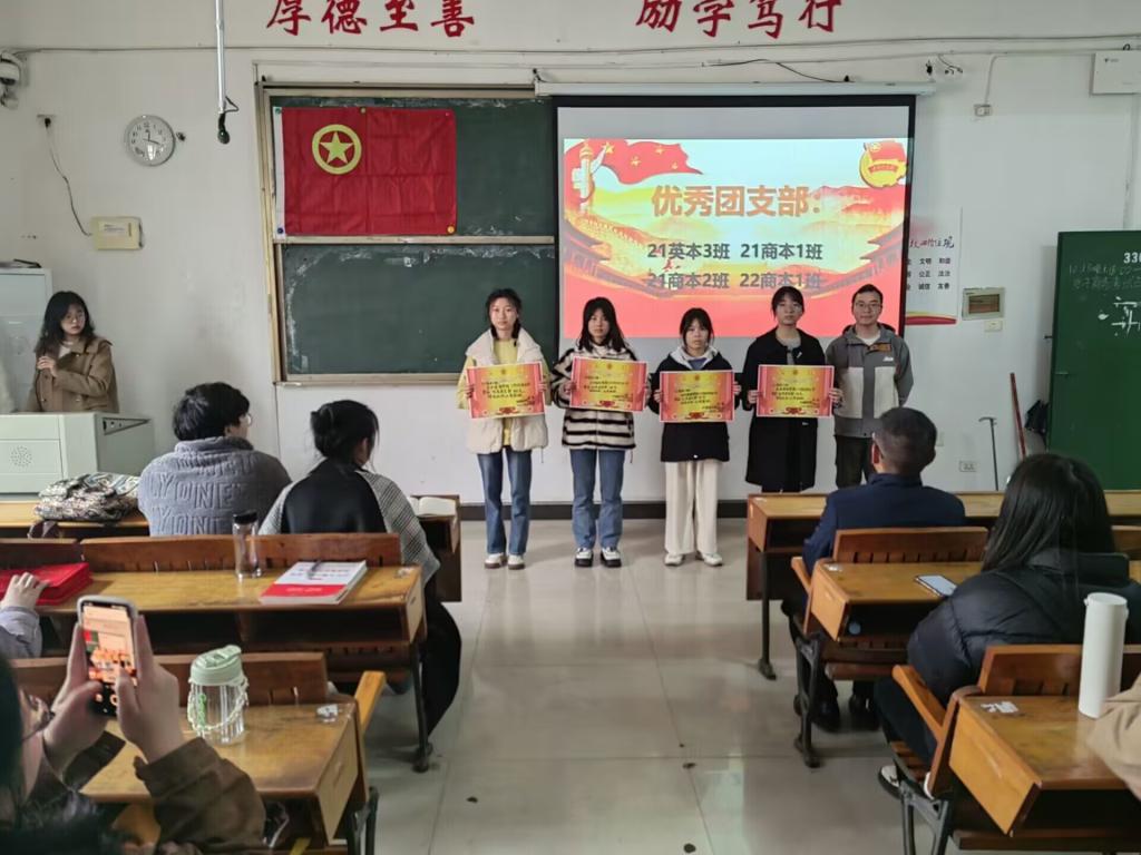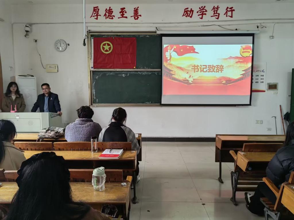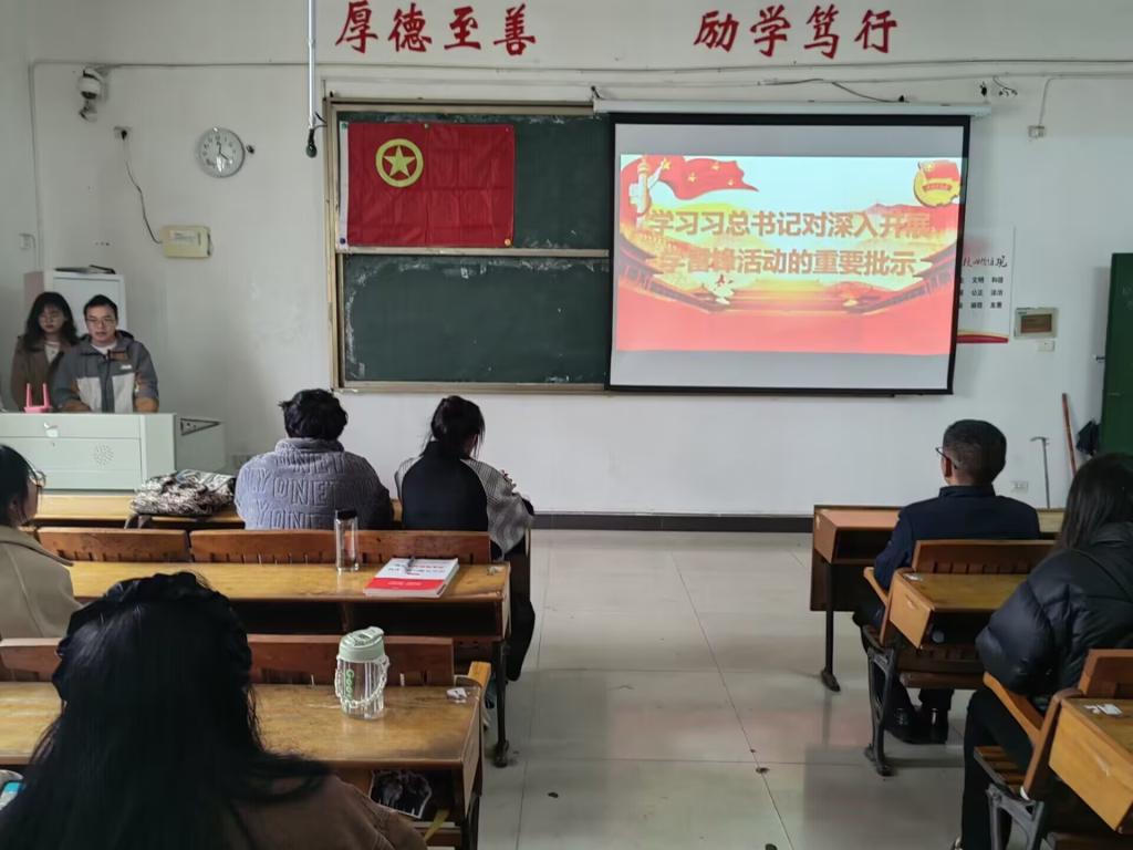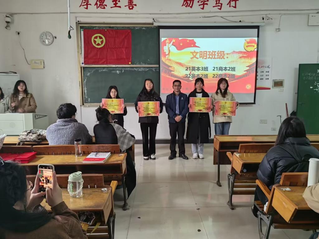 大会始初,由办公室主任进行考勤,确保学干们准时到达会场。紧接着,进入颁奖环节,主持人宣布文明班级、优秀团支部、“My College Life”线上视频大赛获奖情况,并分别由刘书记、冷全宝老师、团委副书记毕鑫、书记助理余文彬为他们颁发奖状并合影留念。随后,由刘书记上台致辞。首先,他对同学们表示在新的一年与新的学期里希望大家能有新的变化与作为,同时强调做好新学期的计划是非常重要的。刘书记还鼓励我们要响应国家的号召,积极参与到学雷锋的活动当中去,做到在活动中锻炼与提升自我,在场的同学们都表示将谨记书记教诲,不断提升安全意识,学习意识与创新意识,增强团结力和凝聚力,并在新的一年做出更大贡献。接着,由冷全宝老师对“学习习总书记对深入开展学雷锋活动的重要批示”主题活动进行阐述。他强调,大学生应以实际行动来学习雷锋全心全意为人民服务的奉献精神,同时学好知识和苦练本领,用自己的专业能力去为国家付出,把青春奉献在国家的建设与乡村振兴中,争做新时代新青年,有一份光就要发一份热。最后,由学生会主席李闫潇对会议进行补充。她指出在校期间,大家应当互相协助、共同进步。同时,她也鼓励大家要认真学习,积极的为学院的活动开展建言献策,努力构建“优良班风、和谐校园”。