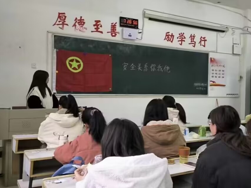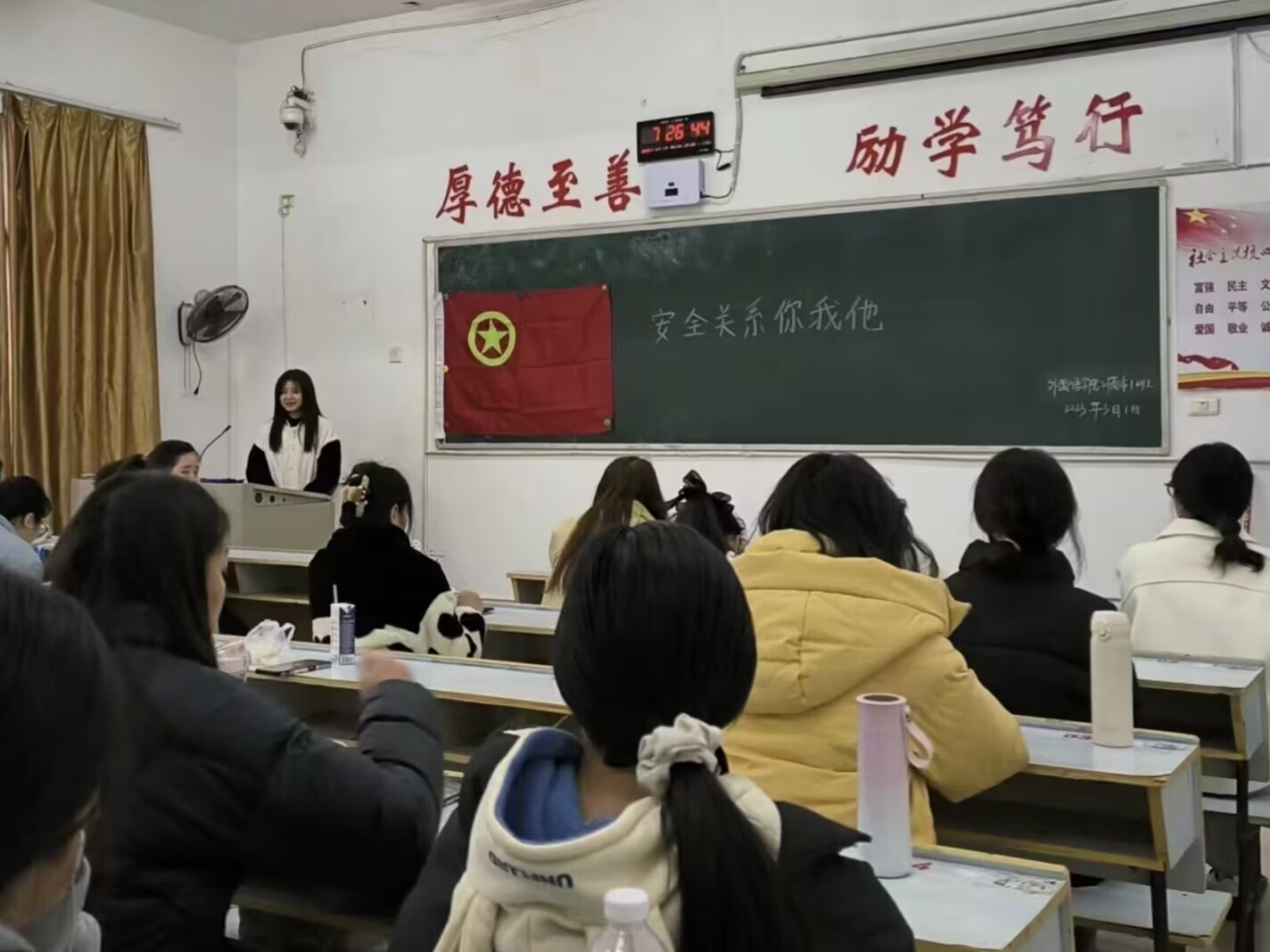 为保障大学生的人生安全,促进学生健康心理的形成。为此,外国语学院21商本1班于2023年3月1日在英华楼3316教室召开“安全关系你我他”主题班会。此次活动由班长郭根梅主持,21商本1班全体同学参与。