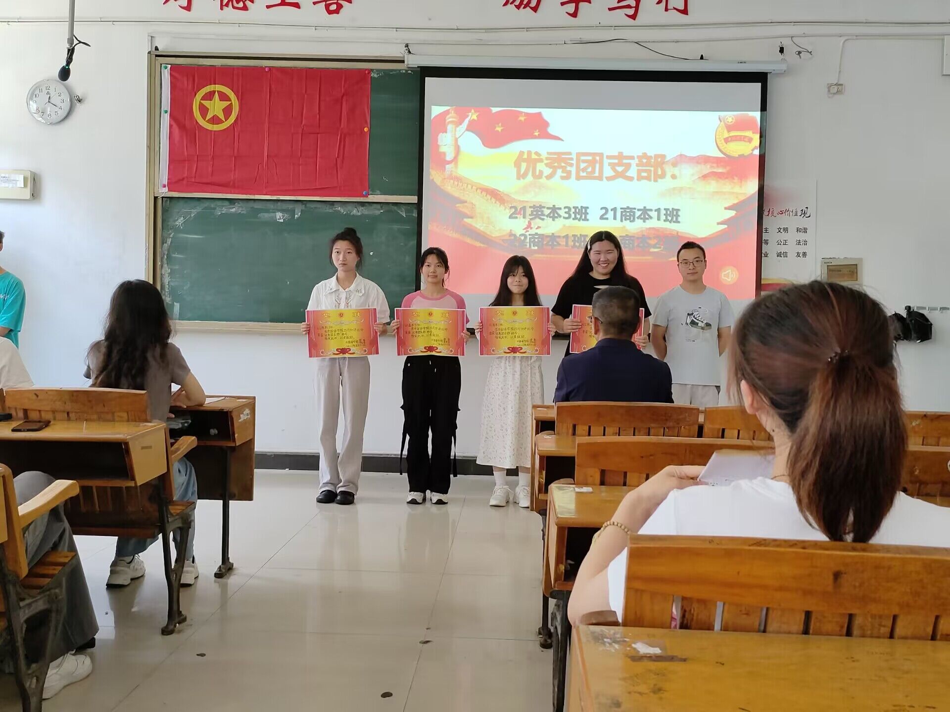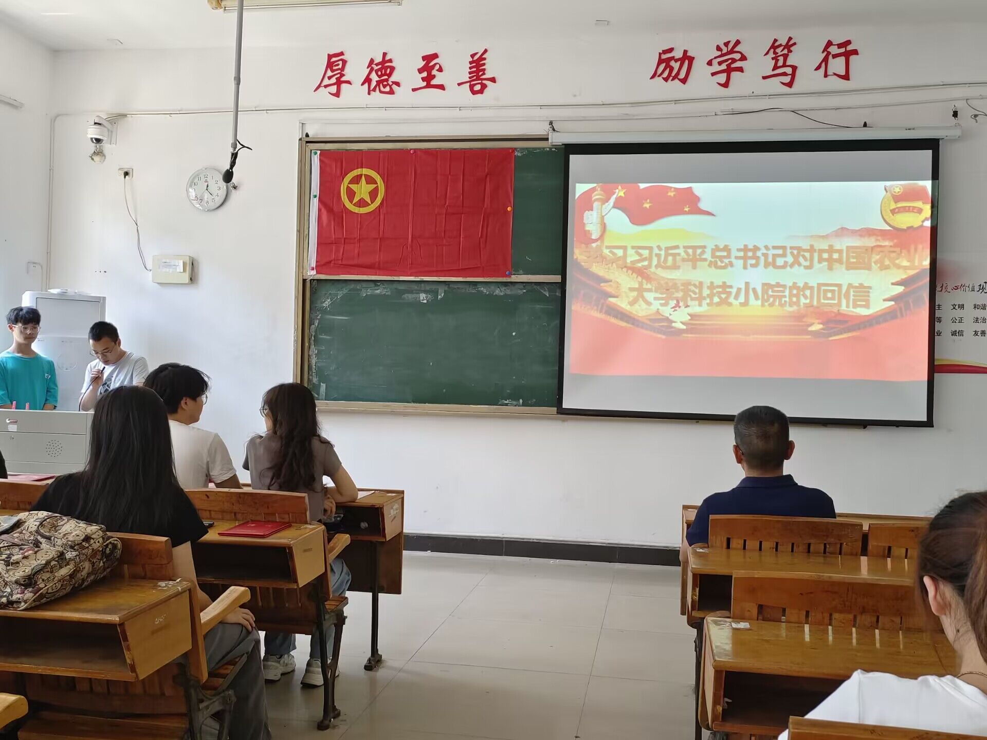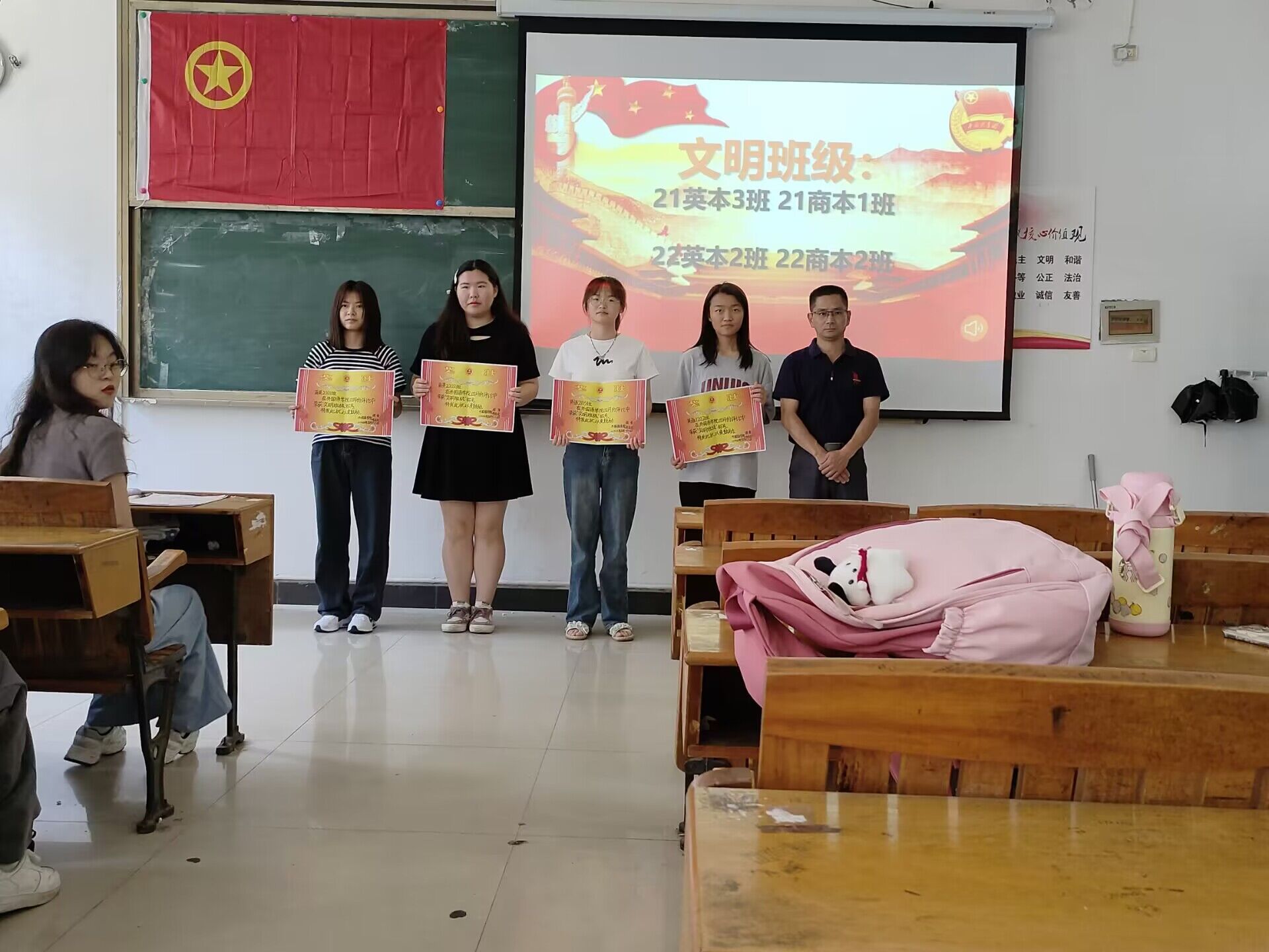 大会初始,由工作人员进行考勤,确保学干们准时到达会场。紧接着,进入颁奖环节,主持人宣布文明班级、优秀团支部、学管会换届获奖情况,并分别由刘书记、冷全宝老师为他们颁发奖状并合影留念。接着,由冷全宝老师带领大家学习习近平总书记对中国农业大学科技小院的回信。在致辞中,他强调我们要努力学习本领,增强自身能力,为中国的建设奉献一份力。随后,由刘书记上台致辞。首先他肯定了学干们在上个月的工作。同时也强调学生干部无论是在学习中或生活中,都应该有所作为、敢于担当、充分发挥先锋带头作用。他还强调大家要谨防电信诈骗,要时刻注意自己的心理问题,及时找老师、同学沟通,争取一起把外院的工作做到最好。同学们也表示将谨记书记教诲,在日常生活中树立良好的学习榜样。最后,在大家的一阵阵热烈掌声中,大会到此圆满结束。