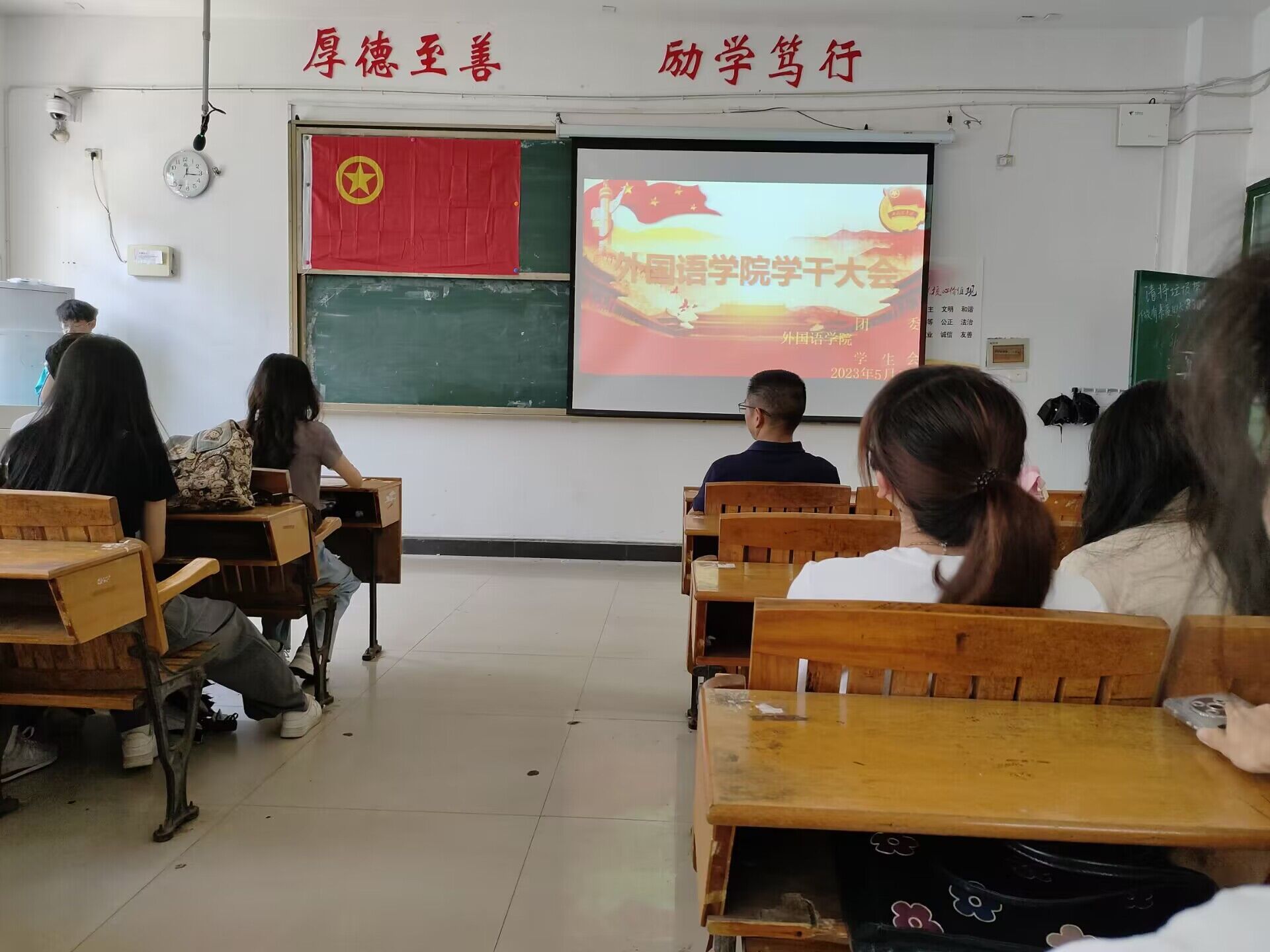 为了进一步提高学生干部的道德素质和工作能力,增强大家的责任的和服务意识。外国语学院于2023年5月18日12:20在英华楼3306教室召开学干大会。莅临本次大会的嘉宾有外国语学院党委书记刘佳萍,团委书记冷全宝,团委副书记毕鑫,学生会主席李闫潇,学生会副主席邓楠楠,书记助理余文彬、李娜,办公室主任黄怡欣,各部门部长及干事和21、22级各班班长及团支书。