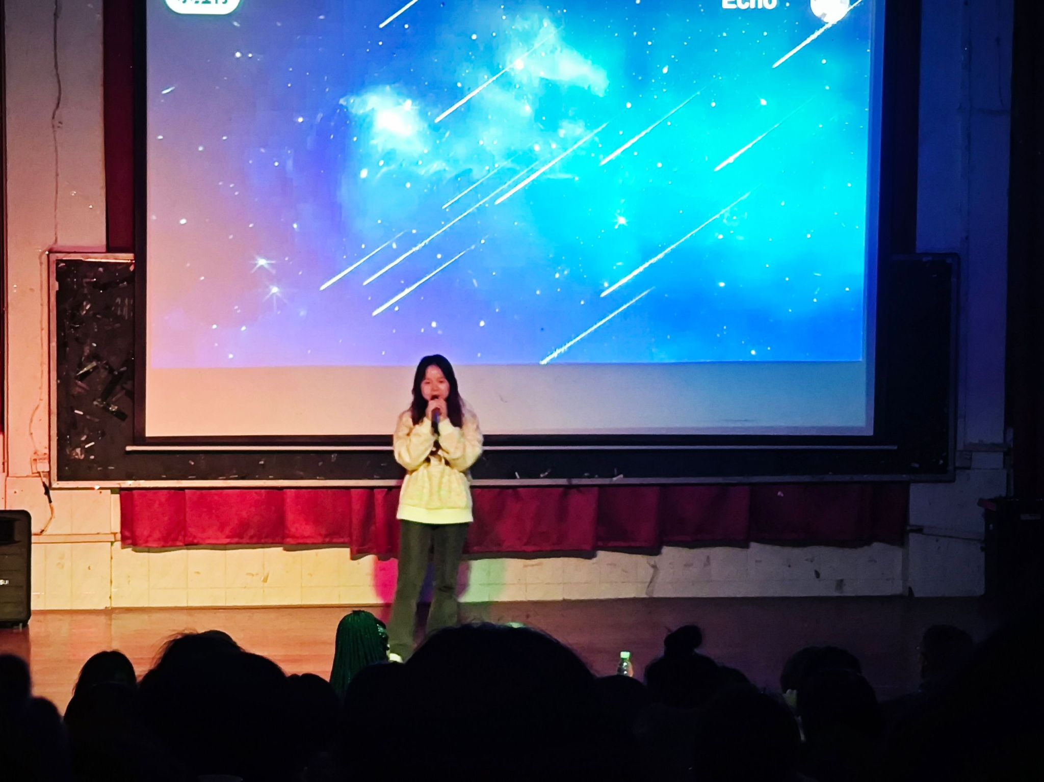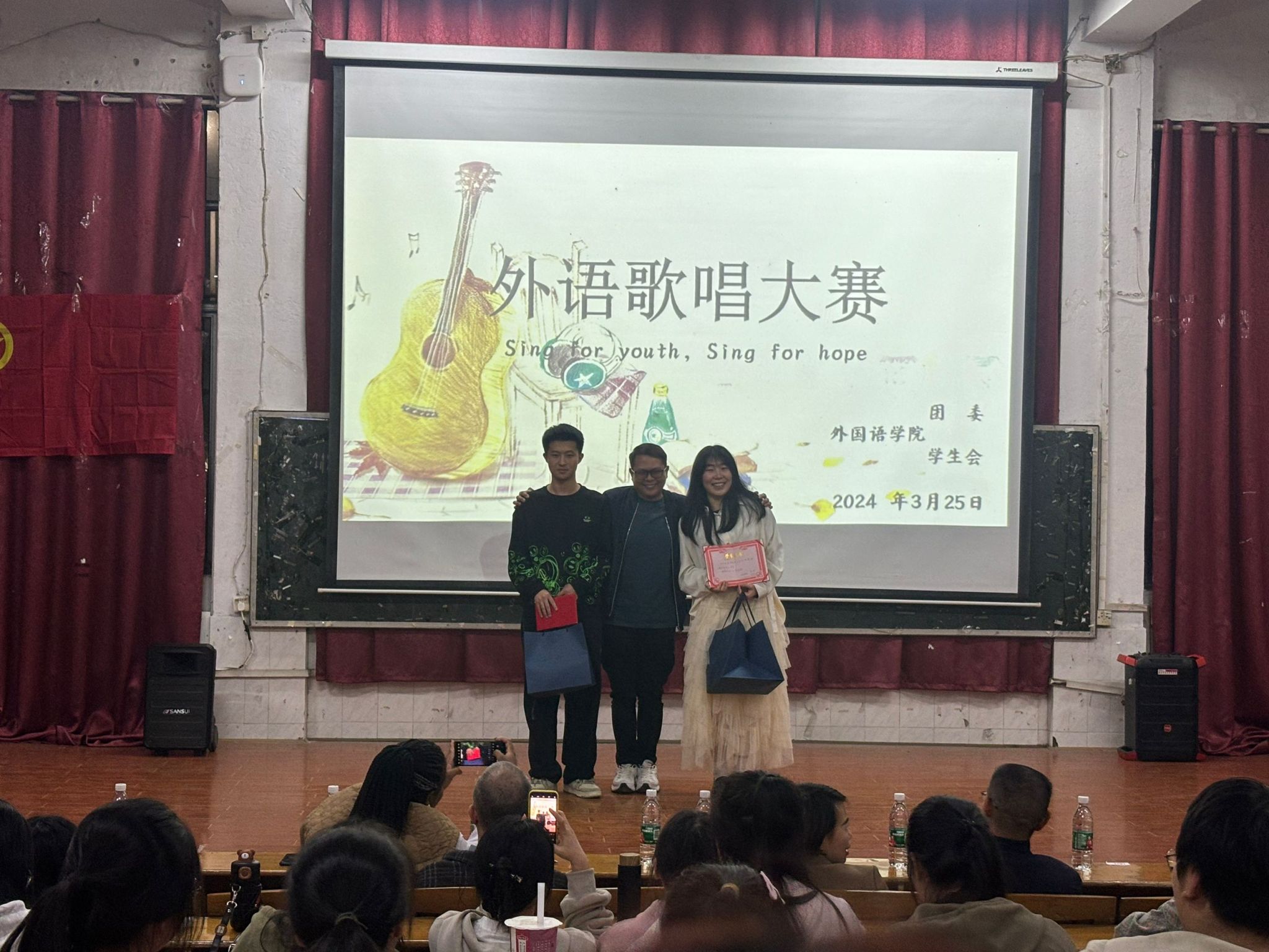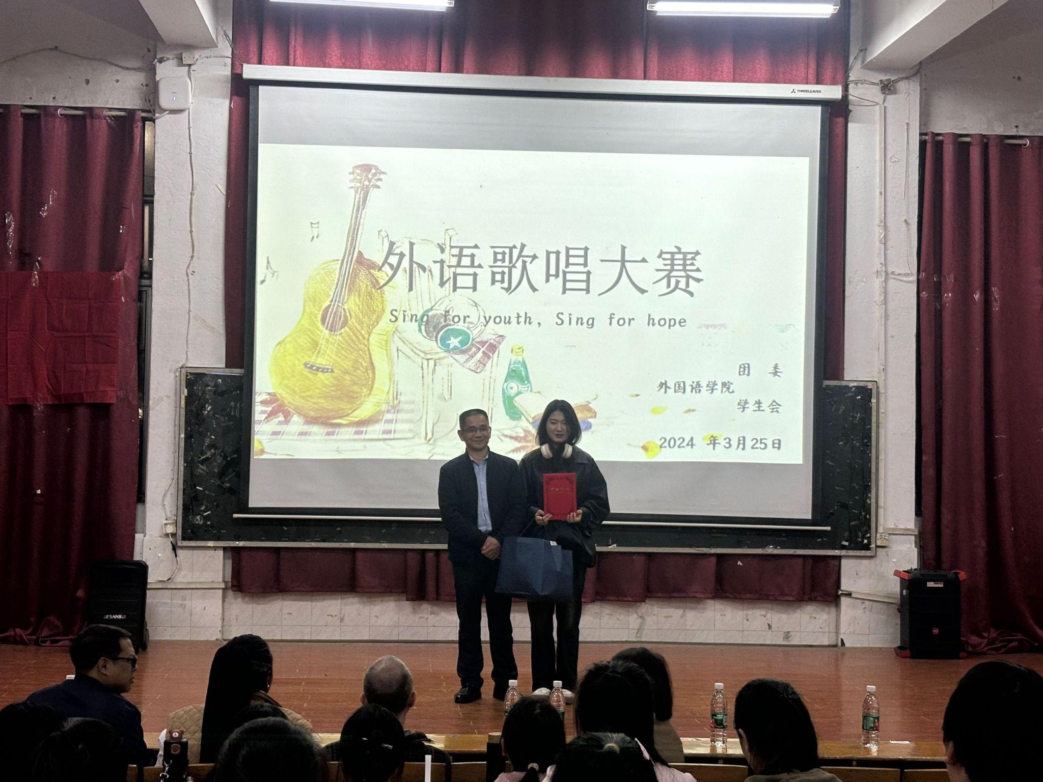 比赛开始后,选手们依次上台演唱曲目。首先带来的是《Monsters》,告诉大家不要让美好被内心的Monsters所耽误,世界没有那么多可怕和悬疑。随后一首《Daimonds》,让大家明白了生命烂漫如虹,目目相对时此刻永恒。比赛如火如荼的进行,每首歌曲都优美动听,每个表演者都倾力歌唱,都在尽力倾注自己的心血。在维也纳一个星光灿烂的夜晚,罗密欧在朱丽叶的窗前,以誓言写下永恒之爱,而在泰勒-斯威夫特的笔下,一段不一样的浪漫故事正在上演,一首«Love story»为大家讲述了其中的故事。斯人若彩虹,遇上方知有。第七位选手将一首《Perfect》送给大家,告诉大家世界上没有绝对的完美无缺,但终有一天你会遇见自己的彩虹。参赛选手有的表现从容,有的难掩紧张,但都将自己最好的状态发挥了出来。参赛节目形式各异,各有特色,尽管同学们选择的歌曲风格各异,但歌词都表达出了他们对美好事物的向往和饱满的精神状态。这些歌曲或空灵唯美,或浪漫深情,或催人奋进,台下观众无一不沉浸在歌声中无法自拔,并在演唱结束后为选手送上了热烈的掌声。除了精彩的表演,为活跃现场的氛围,比赛过程中还融入了报数游戏和猜词游戏互动环节,大家也都积极举手参与,最后,到场嘉宾为获奖人员颁奖并合影留念。在同学们的掌声中,本次大赛圆满结束。