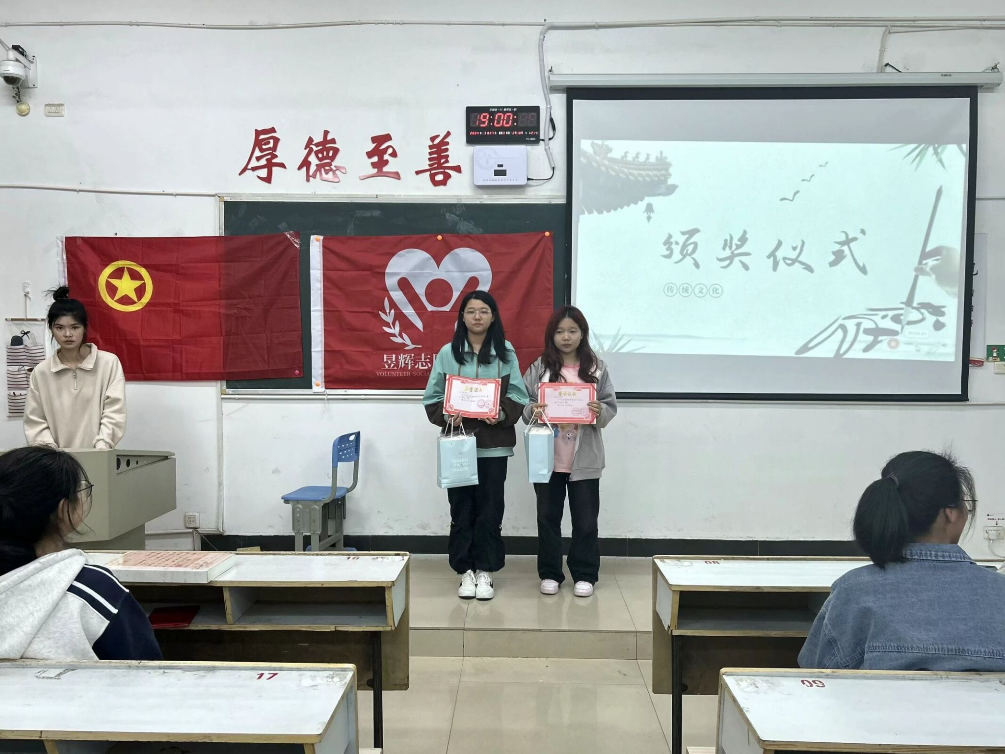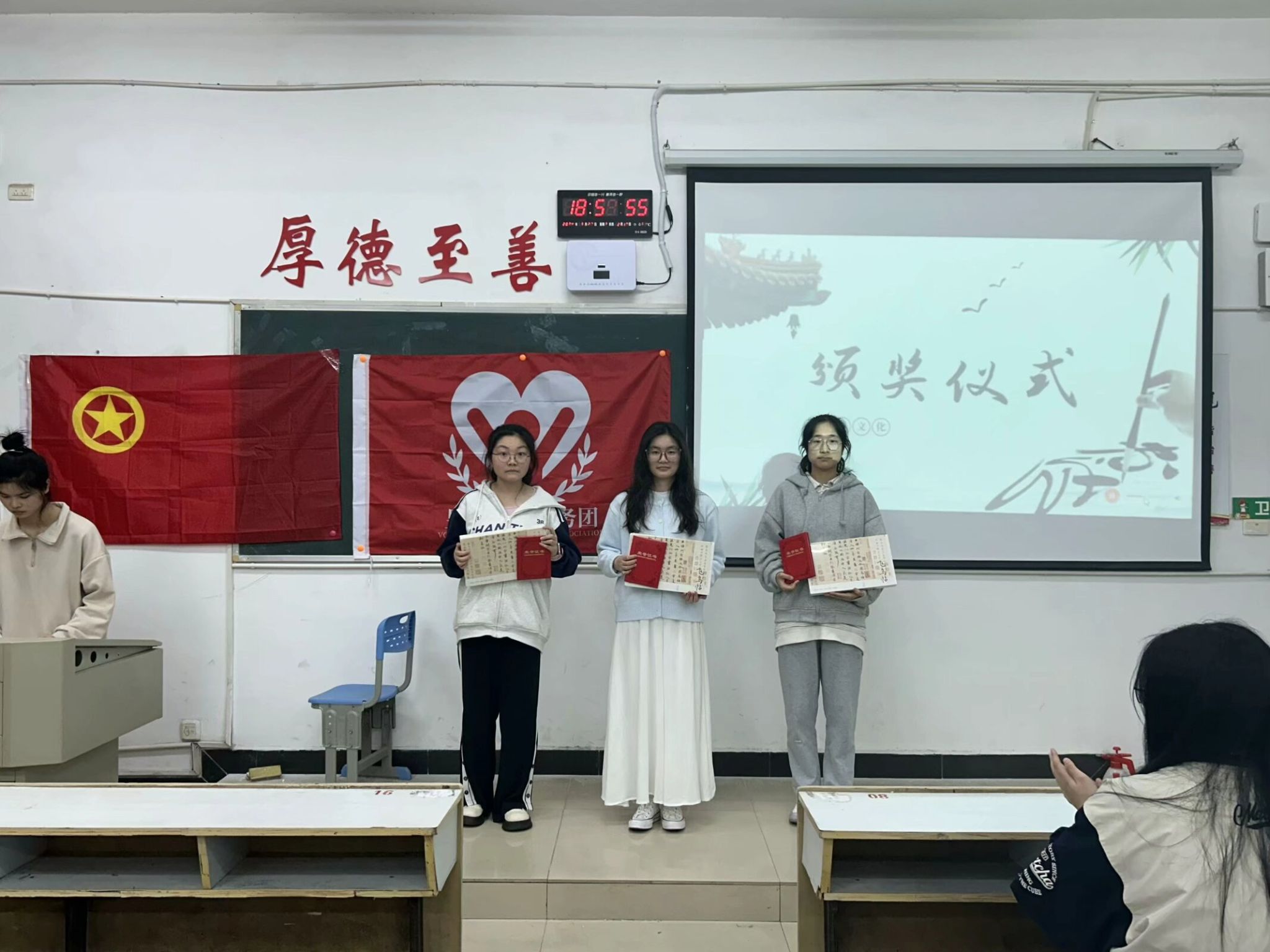 比赛开始,工作人员将统一发放两张比赛用纸,参赛人员将于3月10到3月17日准备自己的作品。在截止日期结束之前交作品给工作人员,接下来就是工作人员的审核时间。审核结束,公布比赛结果。获得三等奖的同学共有三位,他们分别是英语2302班史婉茹,英语2302班裘佳美,英语2302班张庆玉。一卷墨宝,绘尽了中国传统文化的翩翩风采。获得二等奖的同学有两位,他们分别是英语2201班刘子灵,商务英语2102班焦娅伦。见字如面,仪表翩翩。书画一脉,传承千古,渊远流芳。获得一等奖的同学是英语2202班黄田田。一笔一划,尽是墨香,一撇一捺,笔下生花。中华艺术源远流长,汉墨瑰宝万世飘香。
