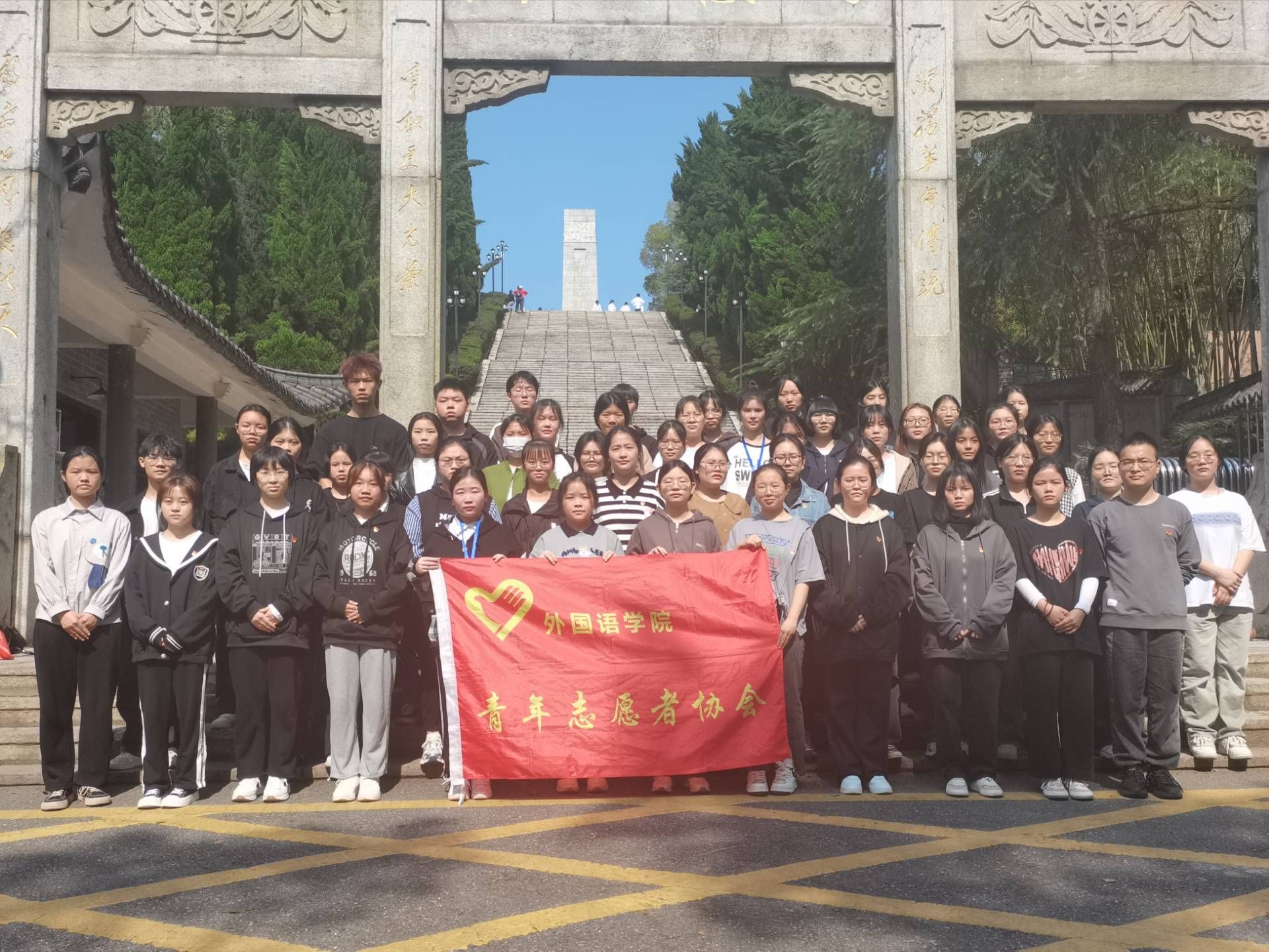 为了增强青年志愿者的爱国主义情感,悼念革命烈士,缅怀先烈的丰功伟绩,外国语学院青年志愿者协会与外国语学院学生英语党支部和学生商务英语党支部以及外国语学院团委学生会于3月30日上午10:00在安源烈士陵园开展清明祭扫活动。