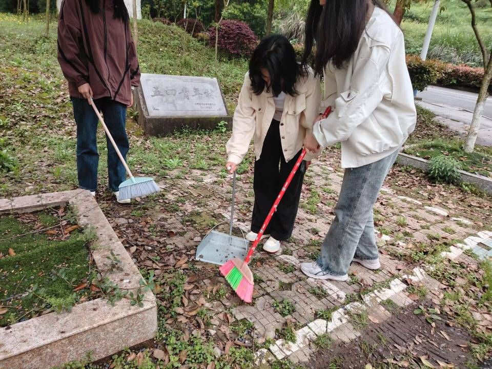 活动开始前,各成员约定集中于跬步楼,人员到齐后,便携带劳动工具一同前往此次活动的指定地点。活动过程中,大家首先确定好要清扫的区域并进行合理分工,随后便开始了此次的清扫活动,所有人都十分认真地打扫着青年林内的每一寸土地。他们的认真与细致加速了整个打扫进程。温暖的阳光洒落下来,与同学们洋溢着笑容的脸庞相得益彰。在大家的共同努力下,五四青年林的面貌焕然一新。清扫过程中,同学们体会到了清洁工人的艰辛与不易,也领悟到了劳动的重要性。我们作为新时代青年要应当提高环保意识,发扬五四精神。最后,成员们在五四青年林石碑前合影留念,随后将团旗整理收纳整齐并清点好劳动工具,此次活动圆满结束。