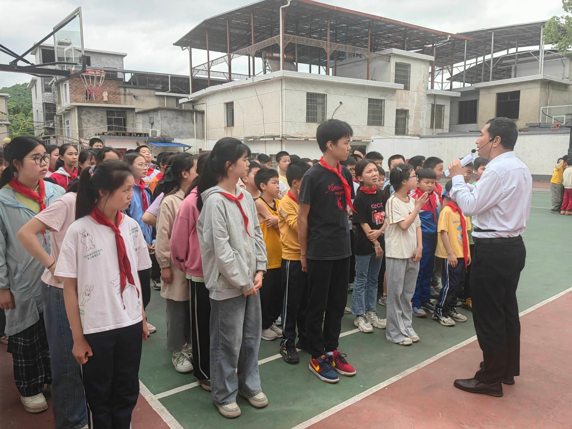 本次活动由王卫民老师和江双莲老师为指导老师。活动前期,由支教队负责人确定好参与活动的人员并对其进行培训,然后准备好活动所需物品以及设计相关游戏。活动伊始,指导老师们与校长沟通并取得同意后,将小朋友们集合在操场上,他们按照年级分为三组,每组由三名志愿者带领,游戏将由小组形式展开。然后游戏开始,在老师和志愿者们的带领下,小朋友们依次进行了“报纸接力往返”“气球飞舞”“你比我猜”以及“丢手绢”四个游戏。在游戏过程中,大多数小朋友积极地配合志愿者的领导,他们认真聆听游戏规则并按照规则有序参与游戏,而少数不配合的小朋友也在老师和志愿者们的安抚和鼓励下渐入佳境,他们的情绪逐渐高涨,每个人都被快乐环绕着,操场上充满了无尽的活力。游戏结束后,小朋友们的脸上笑容不减,纷纷争先恐后地向老师和志愿者分享自己的活动感受和收获。最后,老师和志愿者们在教学楼前合影留念。至此,本次支教团体活动圆满结束。