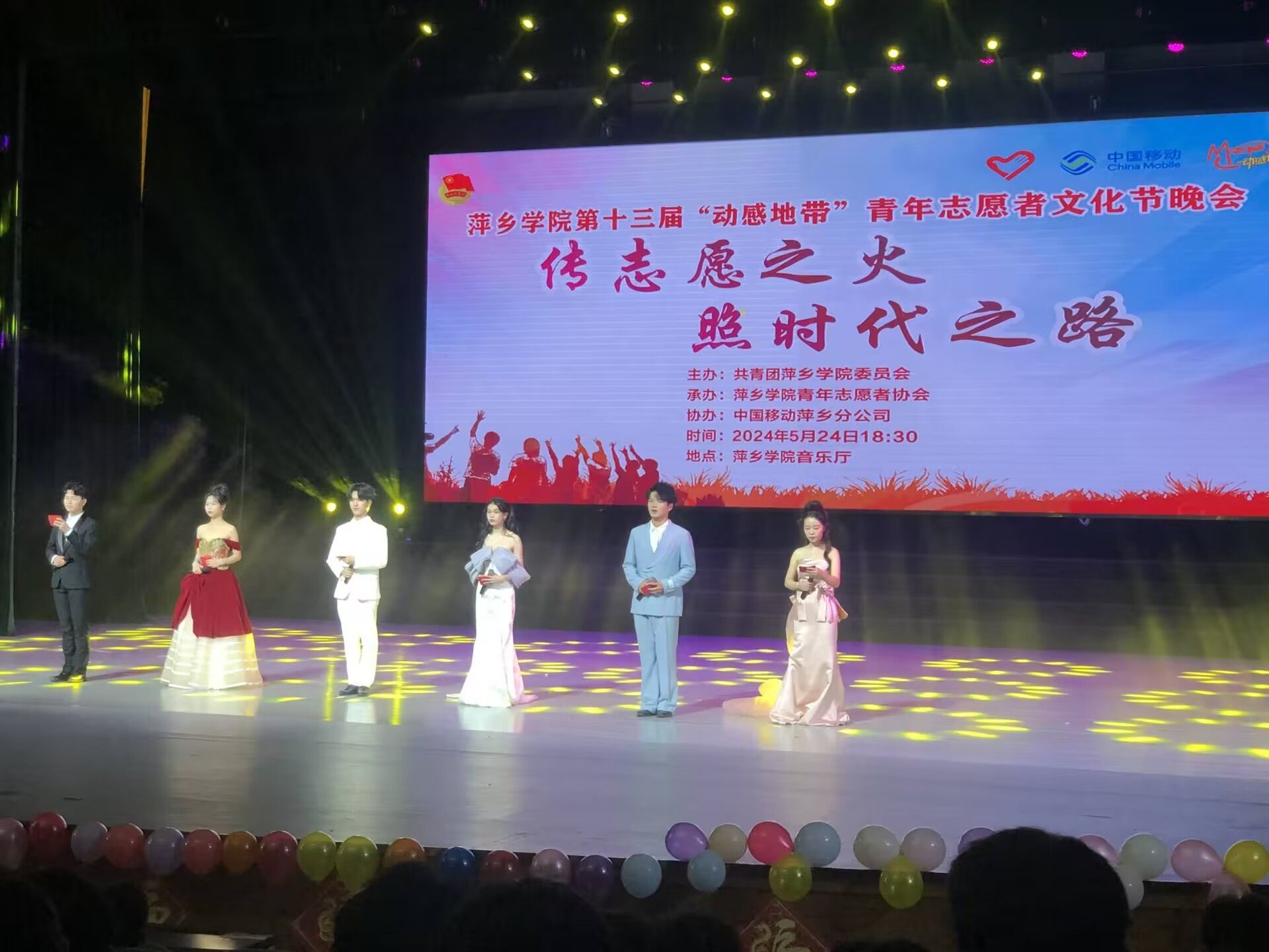 为弘扬志愿精神,燃时代之光,增进各院系间的情感,萍乡学院青年志愿者协会联合十一院系青协于2024年5月24日晚6:30在音乐厅举办了第十三届“动感地带”青年志愿者文化节晚会。出席本次晚会的嘉宾有校团委副书记熊云杰老师,校团委办公室副主任罗冰老师,校团委副书记欧阳群老师,校团委副书记何宇老师,校团委副书记宋字鑫老师,校团委副书记刘飏华老师以及十一院系青协会长。