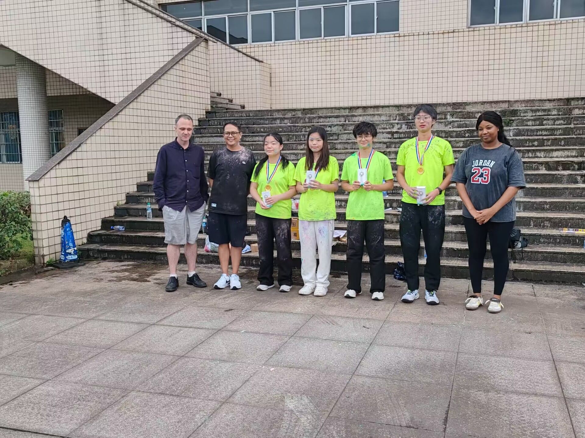活动一开始,主持人宣布了活动中共有八个游戏,它们分别是画图接龙、投篮轮转、卡拉OK限时挑战、排球投掷挑战、蒙眼迷宫挑战、解谜、找硬币和投壶。学生们首先被分为粉队,黄队,蓝队,绿队,接着由他们依次为我们带来准备好的表演,表演十分精彩。随后,主持人先强调了团队合作的重要性,接着宣布今天的英语角活动正式开始。主持人话音刚落,各组成员便疯狂奔向做游戏的各个地方,游戏中,各组成员都互帮互助,积极参与。最终,绿队第一个找到终点线索,赢得了比赛,接着是黄队,蓝队,粉队随后而来。活动即将结束,主持人随机选择四位同学进行了一个短暂的采访,被采访者也简单的分享了自己此次活动的收获,随后,Joey老师总结此次活动。最后,由Joey老师为获得第一名的绿队颁发奖牌和奖品,老师们也为每位参赛者颁发了一份精美小礼物。