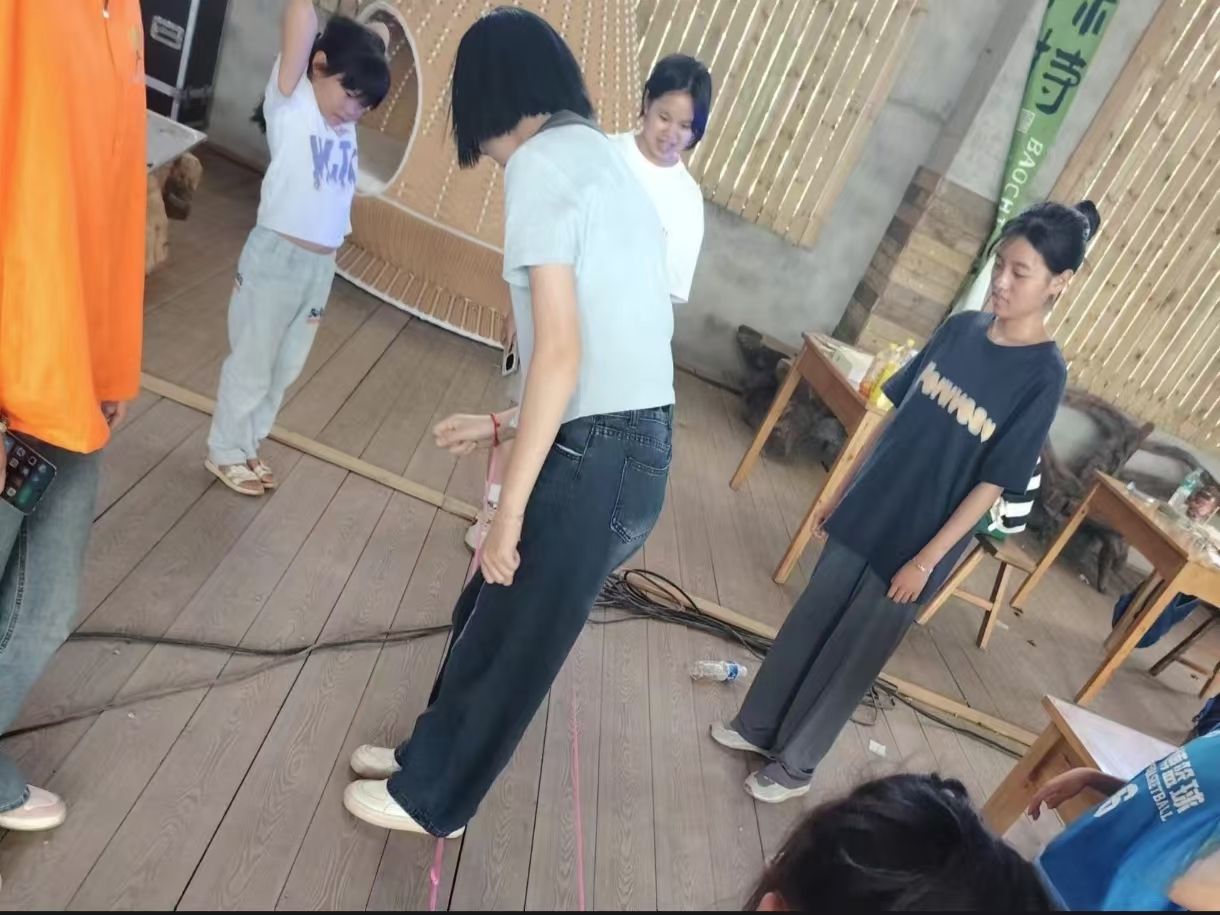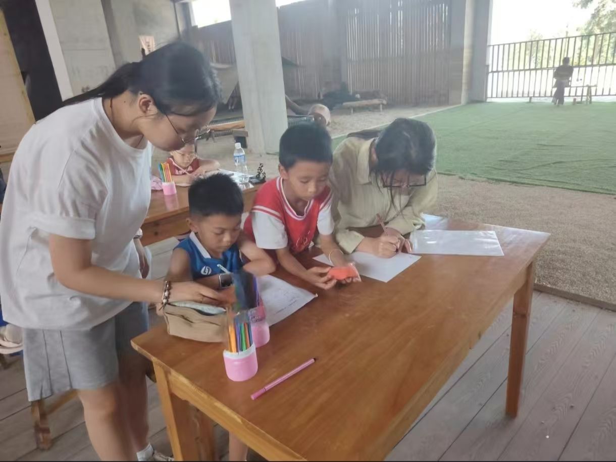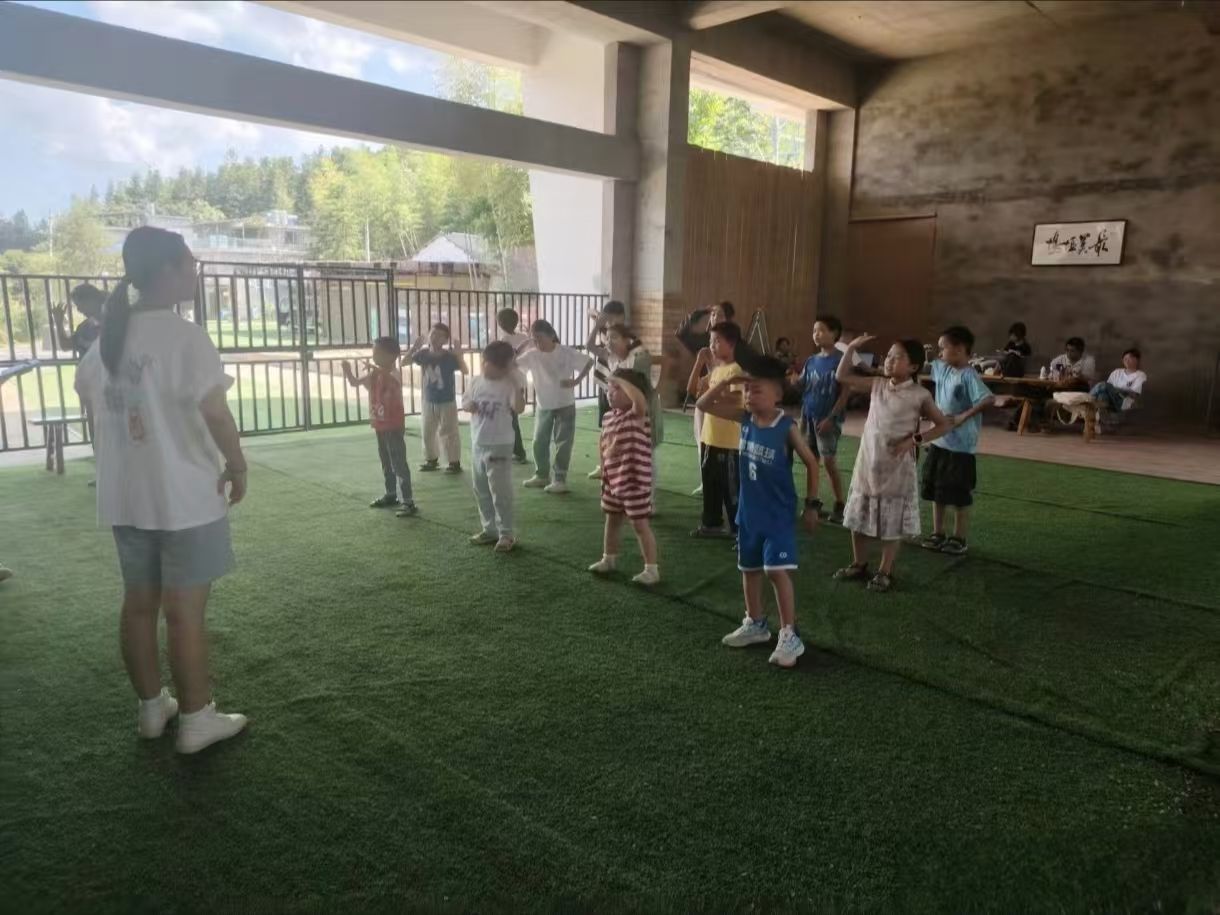 树上的蝉鸣,奏响了午后的第一曲。同学们吃完午餐,早早地回到上课场地,几人成群和支教老师玩起了跳皮筋游戏,大家脸上都洋溢着幸福的笑容,支教老师也感受到了久违的童年乐趣。短暂的休息过后,我们便迎来了下午的课堂。