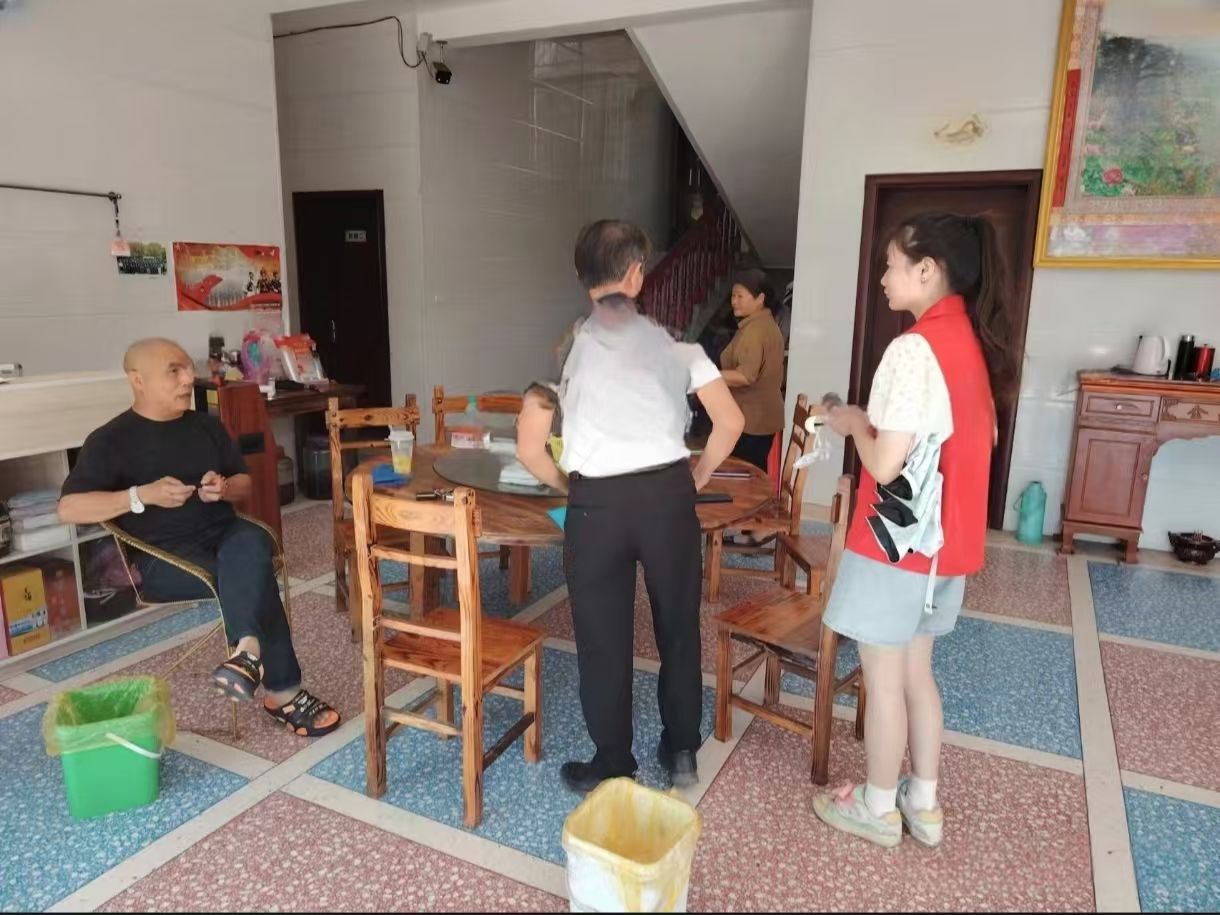 与此同时,直播组和调研组的工作也在顺利进行着。直播组成员们化身短视频平台主播,在直播间介绍垭坞村以及其森林滑水景区,主播走在风景优美的林间小径,举着直播设备带着屏幕前的观众欣赏景区美景并介绍景区的游玩项目。在提高此次活动宣传力度的同时,还为当地乡村振兴产业注入活力。而调研组成员也冒着炎炎烈日在当地村委会成员的带领下,前往附近居民住处,一户户地走访,积极询问当地村民姓氏起源的相关事宜。他们走访期间还观察到当地的稀有树种——红树杉。此次走访对志愿者而言,不仅深入了解了当地文化还开阔了自身眼界,提高了自身素养。