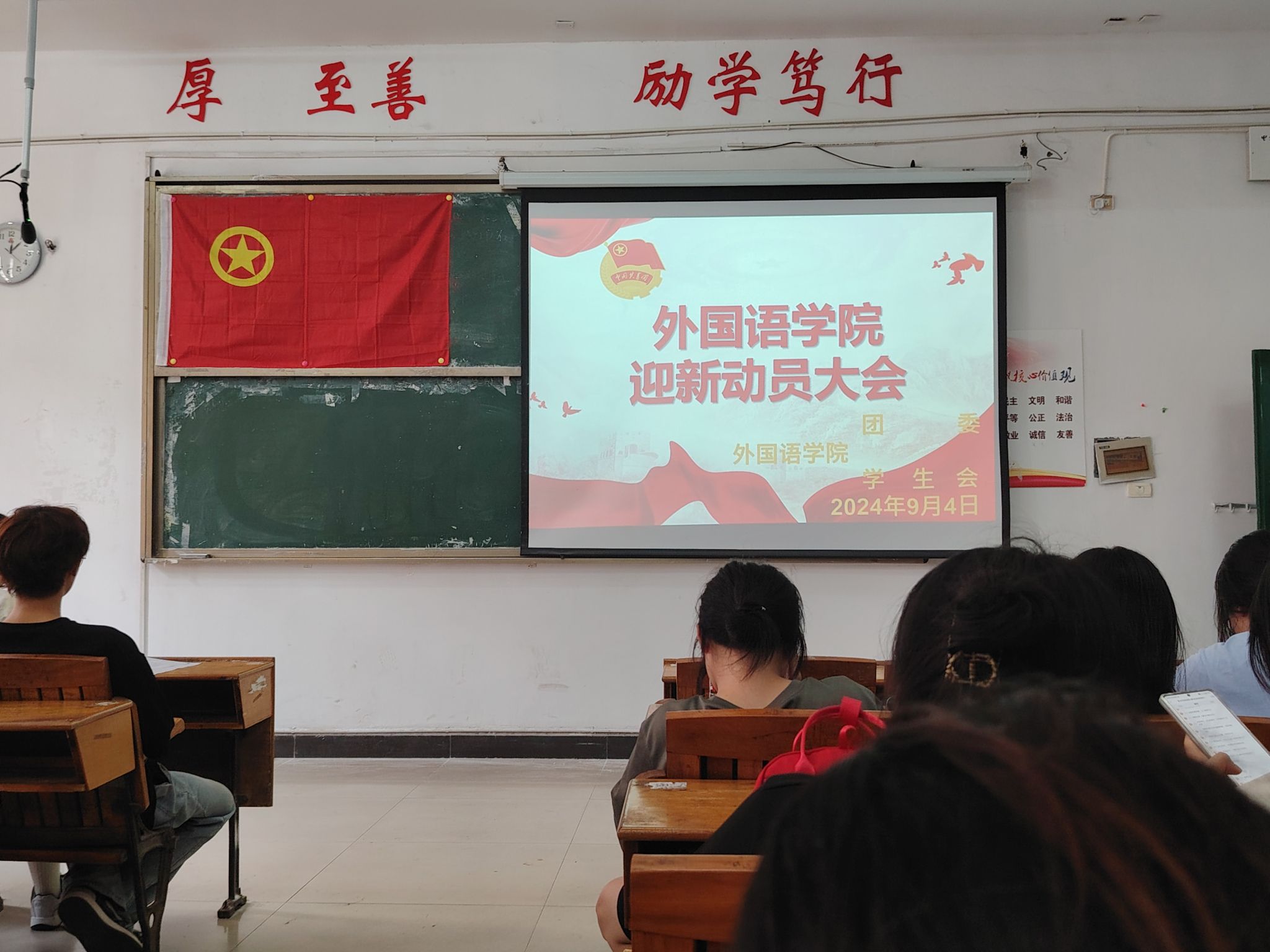 为全面提高学生干部综合素质,保证今年迎新工作的顺利进行,确保新生的学业和生活能够得到有效的帮助和支持,外国语学院于2024年9月4日中午12:20在英华楼3306教室召开新学期学干大会暨迎新动员大会。莅临本次大会的嘉宾有外国语学院党委书记刘佳萍、团委书记冷全宝、24级辅导员鲁珊,团委副书记李晓雨、学生会主席冯浩,以及各部门部长和学干们。
