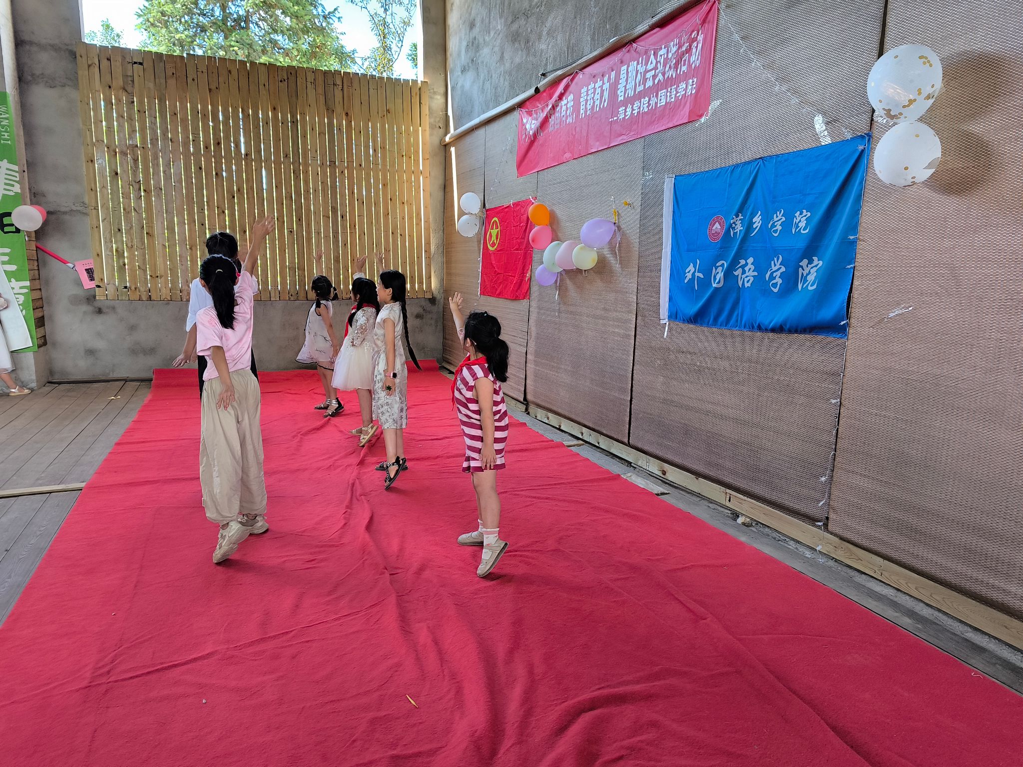 文艺汇演前,志愿者们各司其职,部分志愿者带领孩子们积极的排练节目,其他的志愿者们则在布置会场。文艺汇演开始。首先,由孩子们表演的军体拳以及跆拳道拉开活动的帷幕。随后,主持人介绍莅临本次活动的嘉宾,他们分别是萍乡市麦田志愿者协会会长糜文宇,副会长刘芳,党支部副书记陈忠平、安源区政协委员林耀祖、垭坞村党总支书记严顺奇、安源区政协林耀祖、爱心企业家,垭坞村森林滑水郭经理、萍乡学院外国语学院党委副书记曹金萍、萍乡学院外国语学院团委书记,本次三下乡团队带队老师冷全宝。汇演正式开始,志愿者带来的英文歌曲《Love Story》,用柔美的嗓音表达出来一段浪漫的故事。下一个节目是由小朋友们组成的合唱团演唱《萱草花》,萱草代表着慈母情,稚嫩的声音表达了对母亲的爱。此次文艺汇演,志愿者们还邀请了当地居民,他为我们带来了萨克斯串烧,美妙的旋律席卷脑海。然后是孩子们带来的舞蹈《懒洋洋当大厨》,现场气氛活泼有趣,童年的伙伴再次回到身边。接下来,全体志愿者一起合唱《倔强》,歌声蕴含着志愿者们面对困难挫折不放弃的倔强和勇气,完美地诠释了此次“三下乡”中志愿们所展示的挺膺担当。中国话是中华上下五千年文化魅力的体现,同学们共同朗诵《中国话》,用童音展现我们的文化自信、民族自豪感。随后,志愿者带来歌曲《南山南》,让我们想到了那遥远的、山水相依的南方。最后,便是全体志愿者与孩子们一同演唱歌曲《左手右手》,左手拉右手,一起向前走。文艺汇演至此结束。