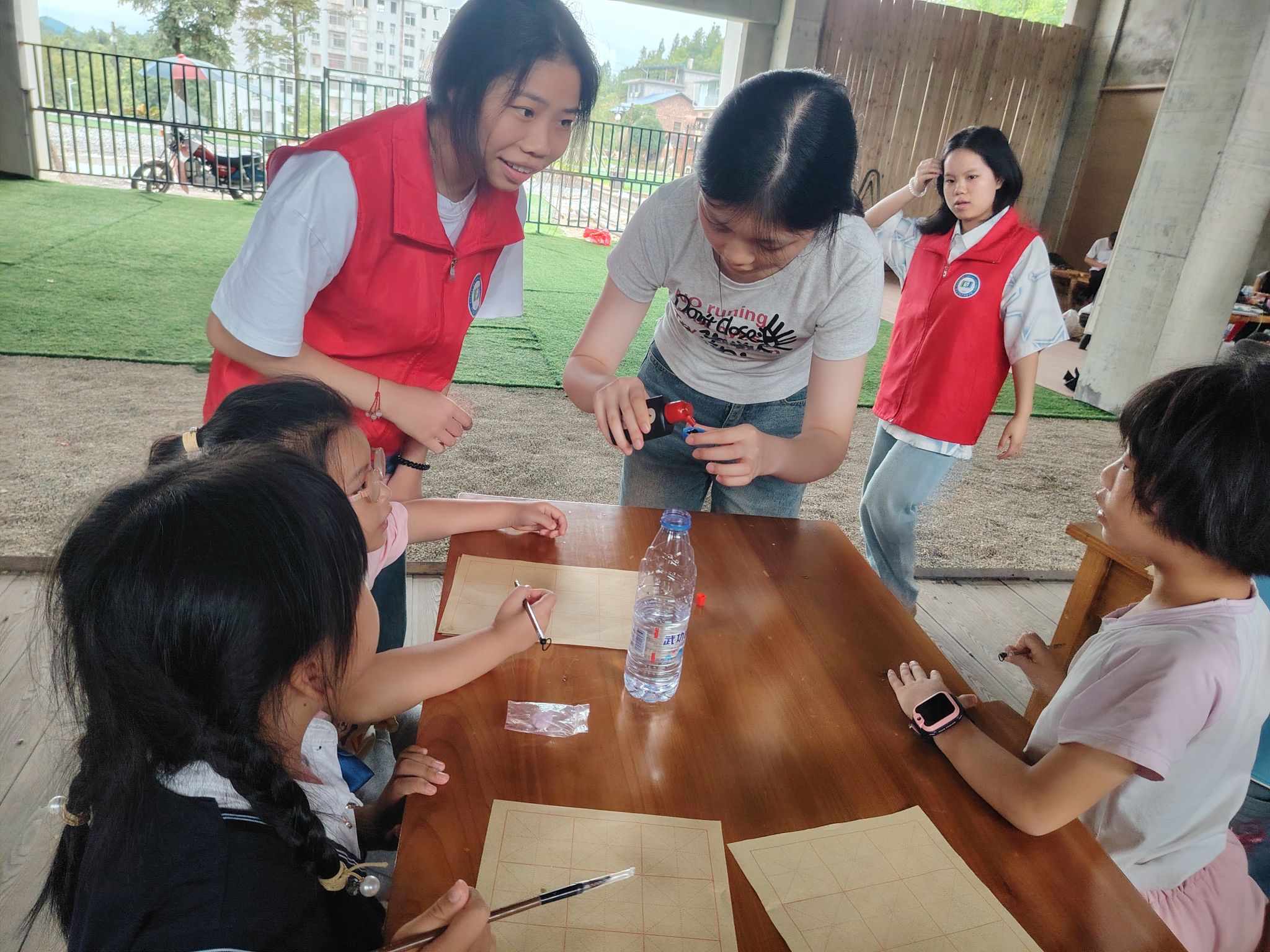 以毛笔书写盛夏,用画笔绘制童年。本次暑期三下乡活动,外国语学院团委在共青团中央和共青团江西省委的号召下,在外国语学院党委和校团委的统一组织下,组建了“童心港湾,筑梦莲花”志愿服务团,组织18位学生,“通过万名大学生大学生进千站”,与萍乡市莲花县垭坞村村委会合作,共同开展关爱留守儿童活动。活动过程中,志愿服务团成员充分发扬新时代青年“有理想、敢担当、能吃苦、肯奋斗”的精神,扎根垭坞,用多样的特色活动,传承中华文化,温暖留守童心,为垭坞村的孩子们带来了一个别样的精彩夏天。