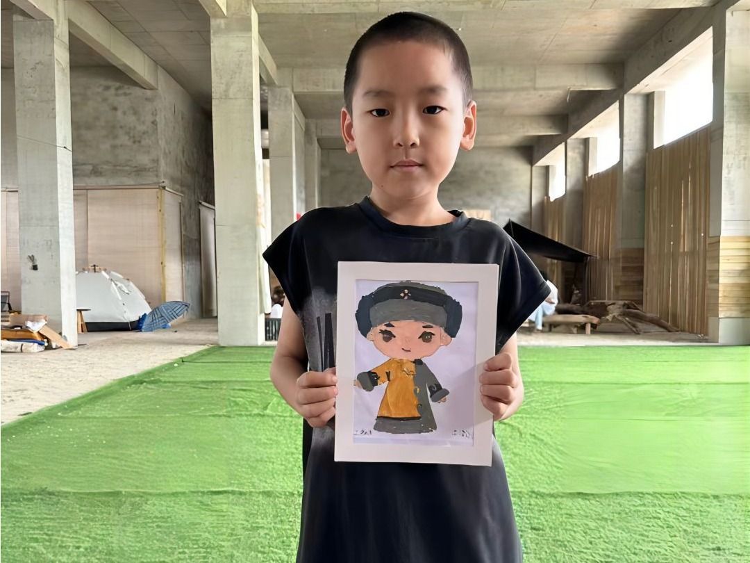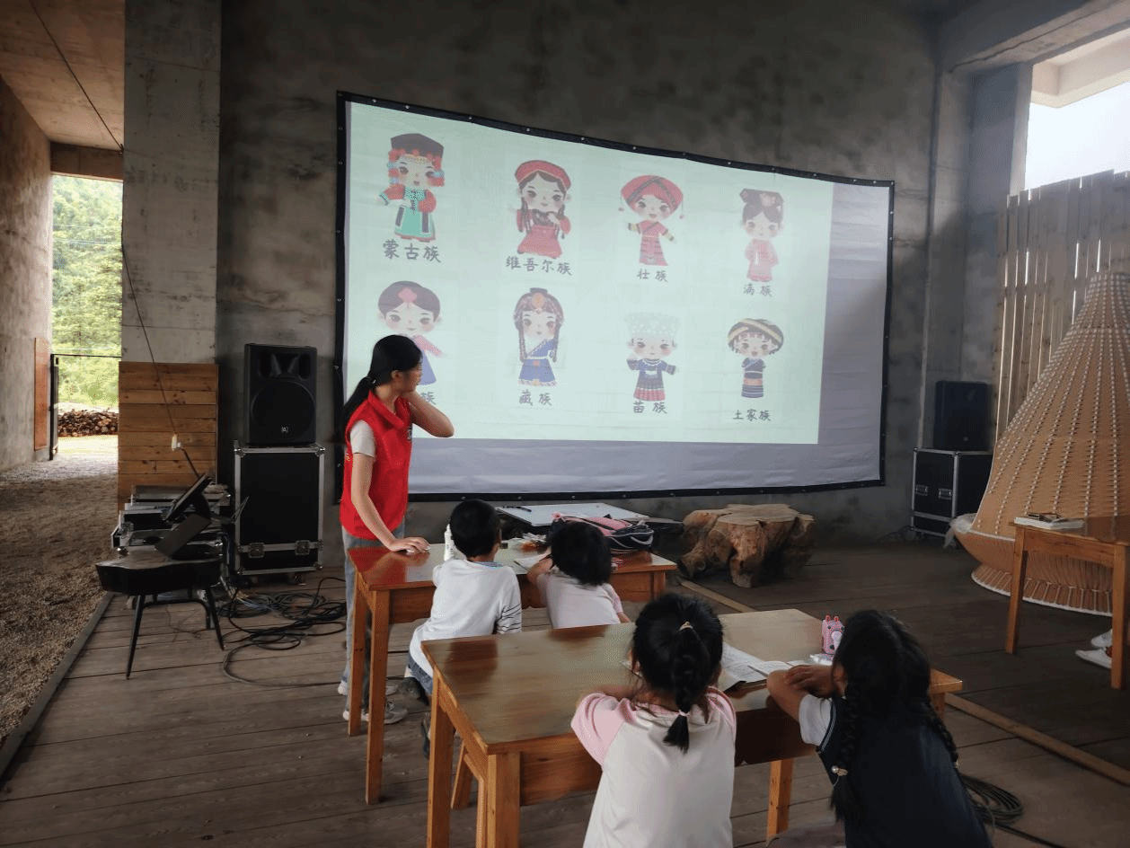 绘画课还未开始,孩子们早已满怀期待地坐到了座位上。志愿服务团老师们拿出一张张印有五十六个民族的卡通人物图片,先给大家讲起了五十个民族的风俗特色与有趣故事。然后再给他们每人发下一张,教导他们有彩笔进行描摹。彩色的画笔在纸上沙沙作响,童年的时光在彩色的世界中徜徉。随着一张张可爱的五十六个民族的卡通人物在笔下慢慢呈现,“中华民族一家亲”的种子也在小小的心灵中悄悄种下。