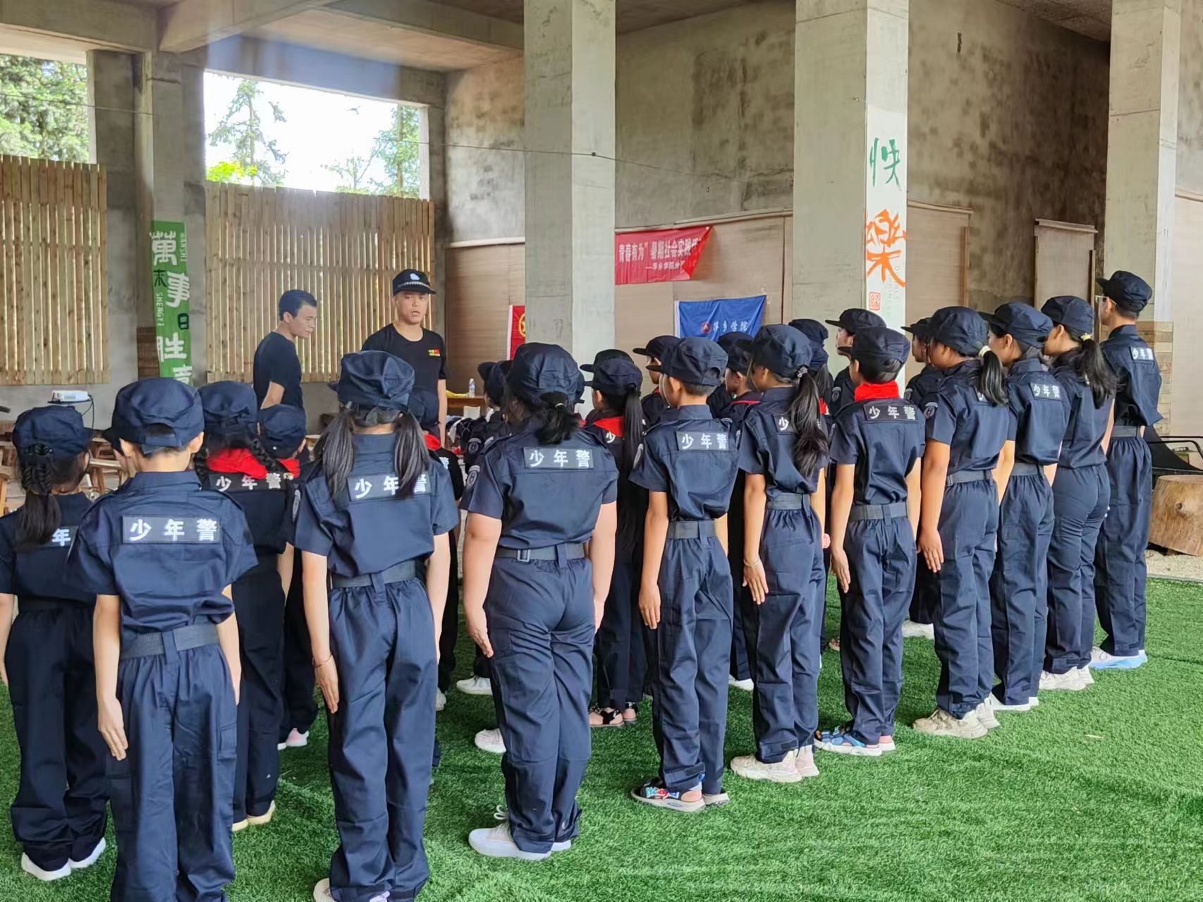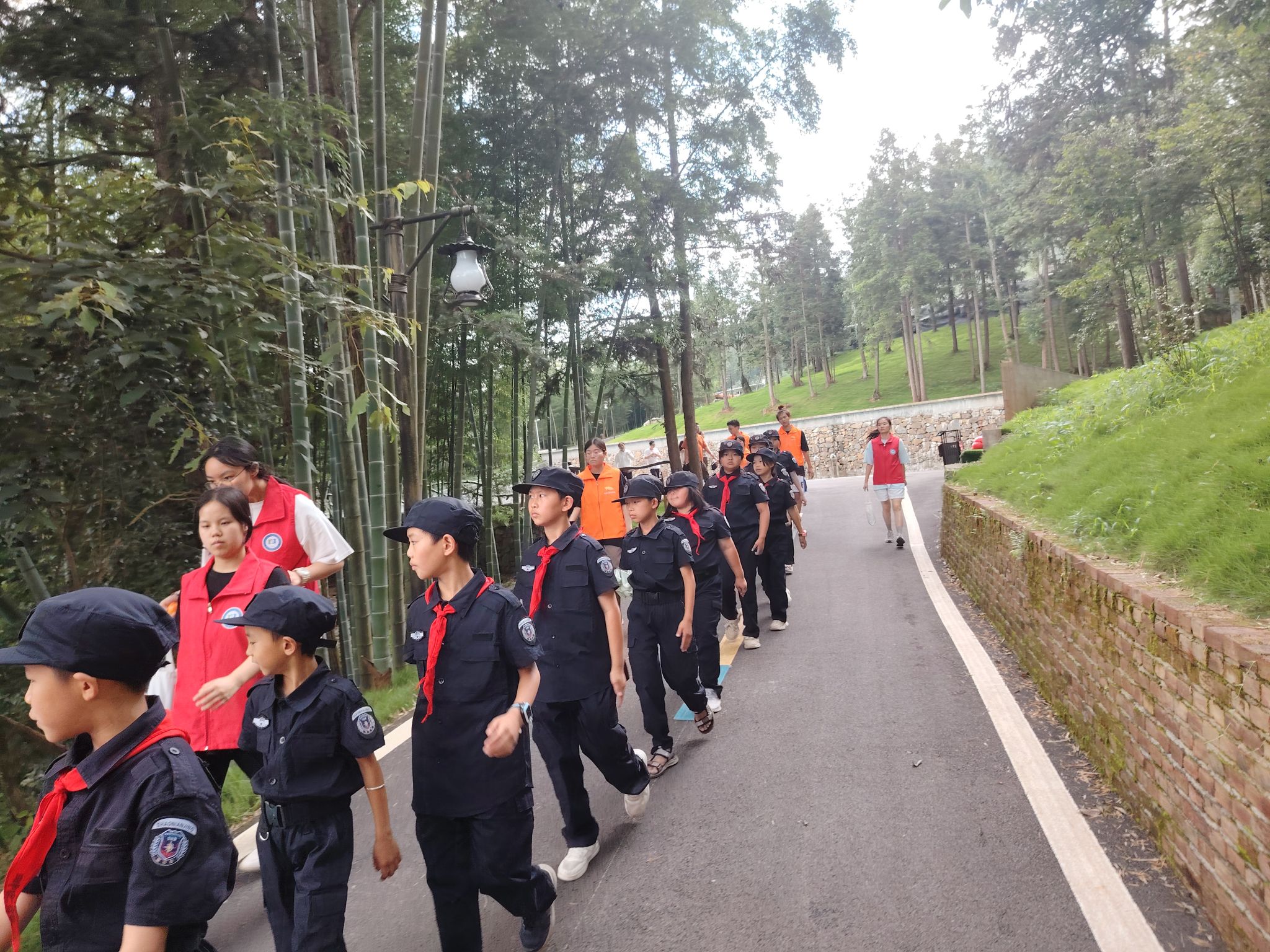 “挺胸抬头收腹,双臂夹紧,双手中指紧贴裤缝,两脚分开60°。”随着教官一声令下,孩子们按照身高,排成两列纵队。孩子们小小身躯犹如挺拔的白杨,教官不断纠正孩子们的动作,严厉的教导只为磨炼其意志。站军姿结束后,经过短暂的休息便来到同学们最期待的环节,模拟打靶,教官先向大家介绍此次打靶的枪支名称及相关信息,再演示如何举枪瞄准、扣动扳机开枪。同学们热情高涨,有序的排队打枪,教官在一旁指导,而我们的志愿者们在为孩子们加油鼓劲。打靶结束后,在志愿服务团成员们的带领和陪伴下,所有人迎着骄阳,到垭坞森林滑水基地进行拉练。一路上,志愿服务团成员不断为孩子们加油鼓劲儿,鼓励他们坚持就是胜利。遇到不舒服的孩子,还会及时为他们处理。在志愿服务团成员们的鼓励与陪伴下,预定的拉练任务圆满完成。“古之成大事者,不惟有超世之才,亦必有坚韧不拔之志。”一天“少年警”的体验不仅增强了孩子们的体魄,更树立了他们坚韧不拔的意志。