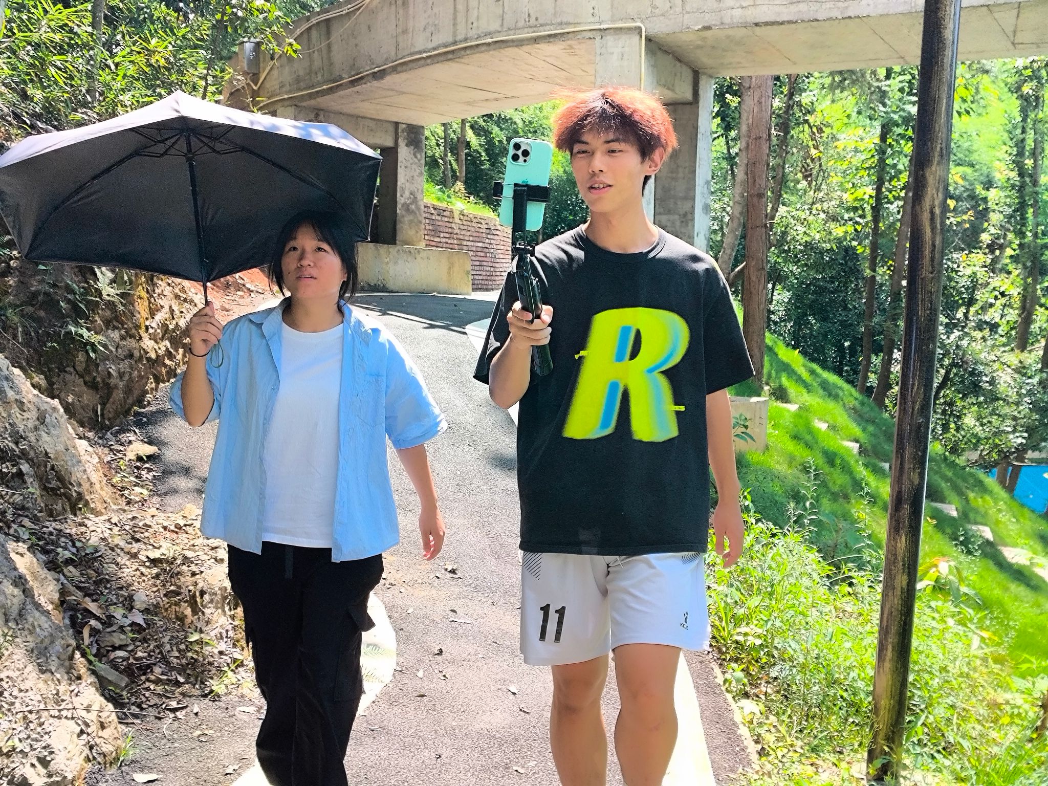 森林滑水景区市垭坞村目前重点打造的农旅综合项目,在带动村民就业,推动垭坞村“旅游+振兴”发展的过程中发挥着重要作用。了解到景区目前人气不高,志愿服务团的成员们化身短视频平台主播。“现在我们正在萍乡市垭坞村森林滑水景区,这里游玩项目众多,结合了冒险与乐趣,游客可以选择合适的滑道游玩,在森林中享受与大自然的亲密接触。此外还有放松身心的森林小径、帐篷露营、户外烧烤等,朋友们现在搜素垭坞村森林滑水购买门票,一票玩全区.......”面对镜头,他们侃侃而谈,在直播间介绍起垭坞村以及森林滑水景区,举着直播设备带着屏幕前的观众欣赏景区风景,并介绍了景区的游玩项目。主播用幽默有趣的语言与直播间观众积极互动,积极的介绍景区,还分享了此次暑期“三下乡”的经历。尽管骄阳正盛,成员们都汗流浃背,但依然微笑着与大家共享,表现出极高的专业性。