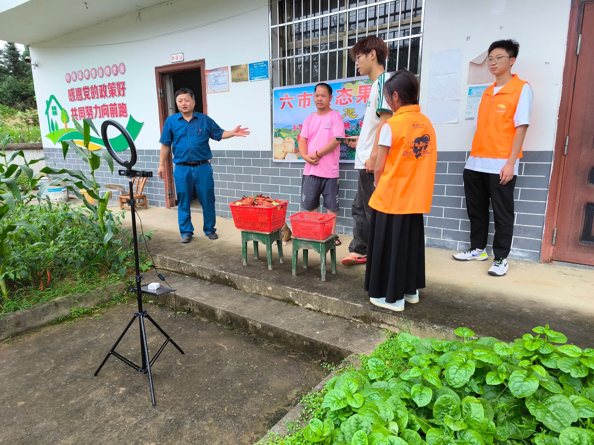 到垭坞村前,志愿服务团成员了解到,垭坞村部分村民有种桃和养蜂,想要借助电商拓宽销售渠道,但囿于对电商、短视频及直播等方面的知识有限,且大部分年纪较大,上手比较困难。因此,7月5日,志愿服务团成员带上直播设备,跟随村中志愿者一起来到村民林建富家中,了解其需求。随后,志愿团服务团成员们与其商讨确定视频剧本,为其拍摄剪辑短视频。同时帮助他了解视频拍摄和直播等的简单技巧。尽管日渐西沉,但他们的热情依然如一团火,点亮着农户们的致富路。