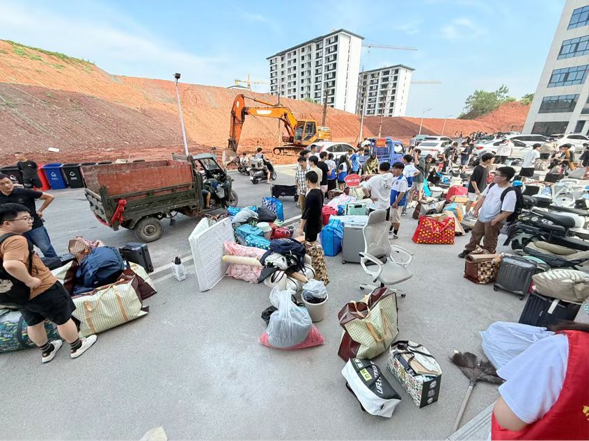 9月4日的校园里,行李箱的滚轮声与爽朗的吆喝声交织成动人的乐章。外国语学院的老师们与学生干部们并肩行动,化身“搬迁护航队”,全力协助19栋男生顺利完成寝室搬迁。