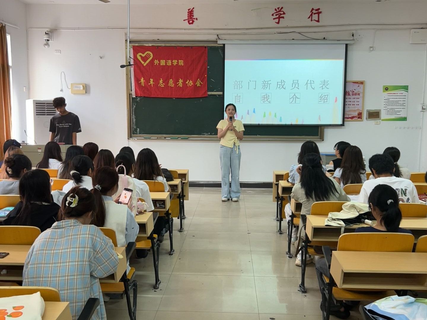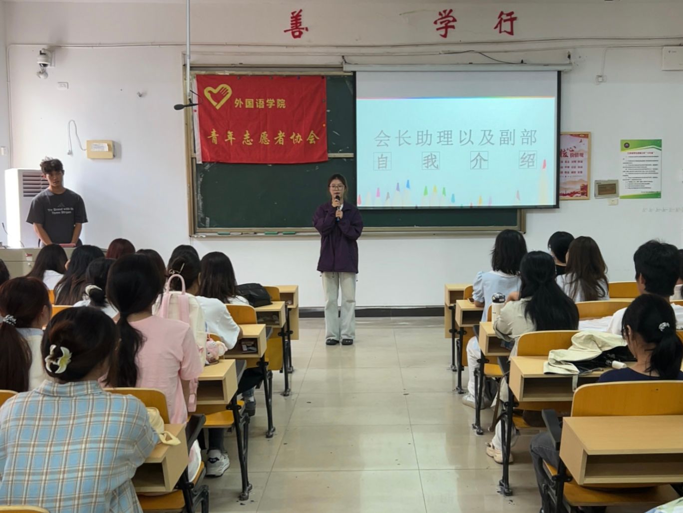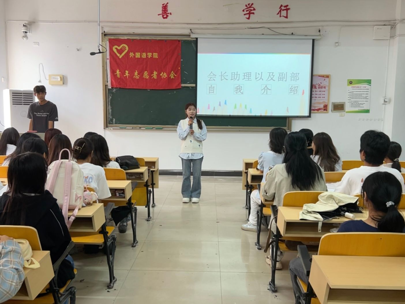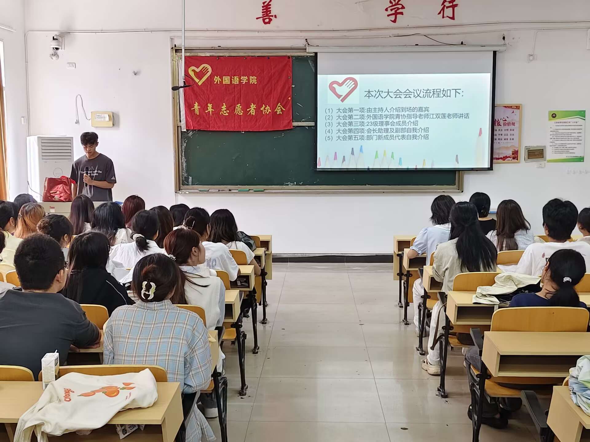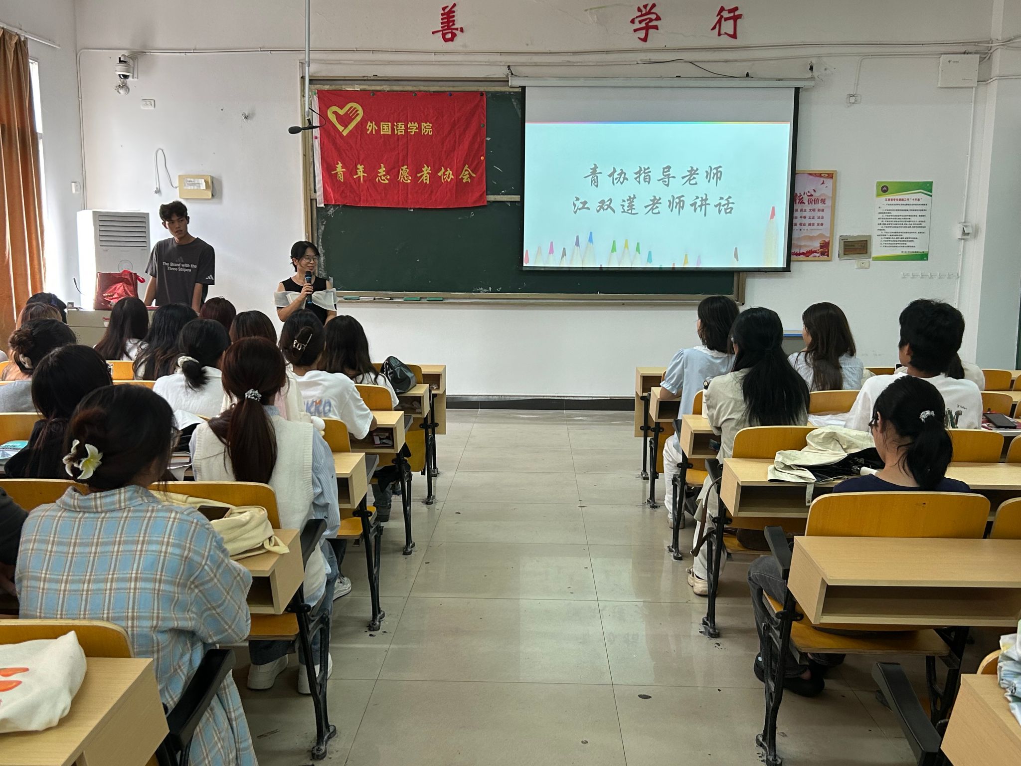 2025年9月16日,星期四,中午12:20,外国语学院青年志愿者协会在英华楼3306召开例会,出席本次例会的嘉宾有外国语学院青协指导老师江双莲老师,外国语学院青协23级理事会成员,外国语学院青协24级理事会成员以及加入外国语学院青协的25级新生。