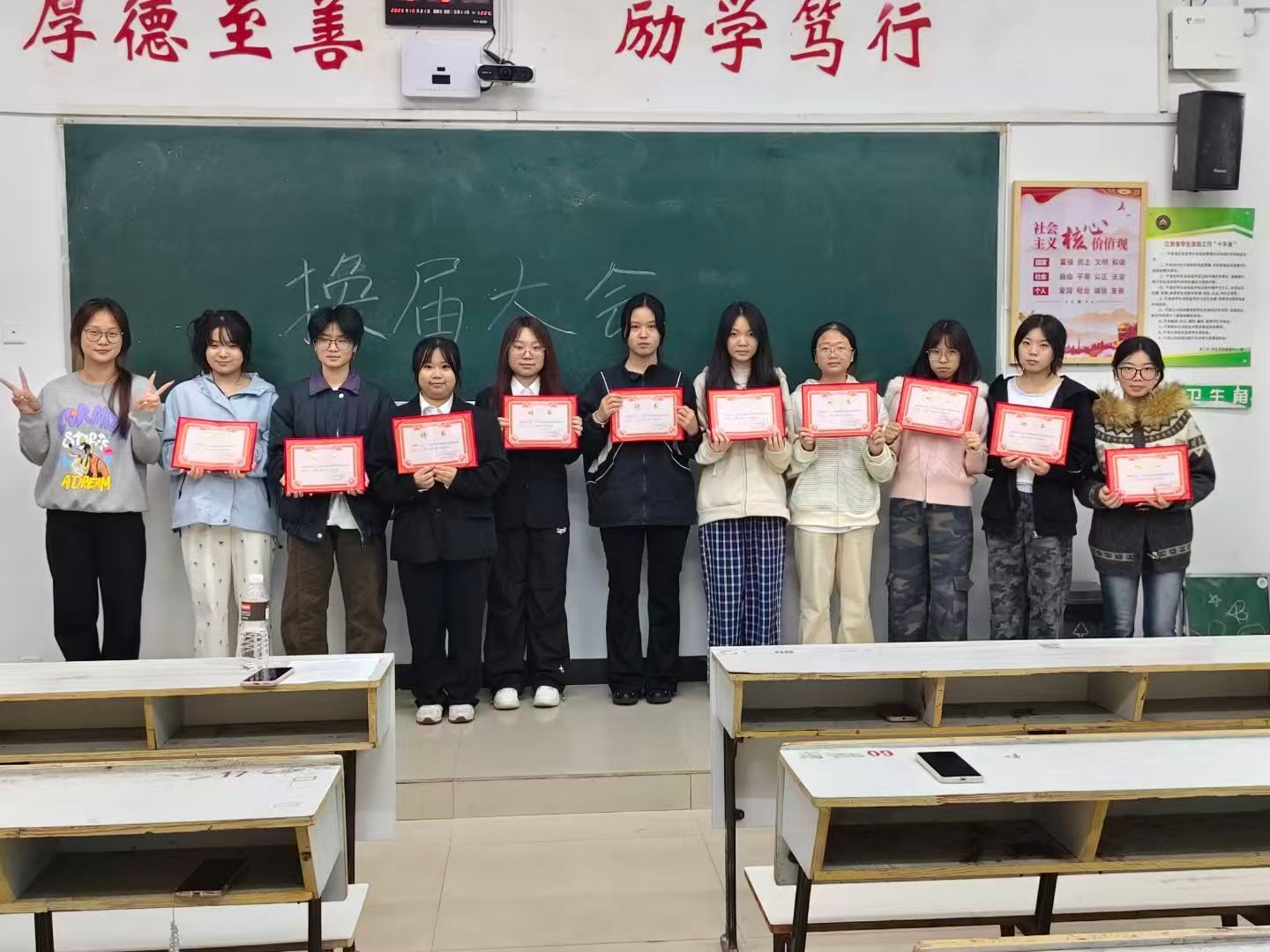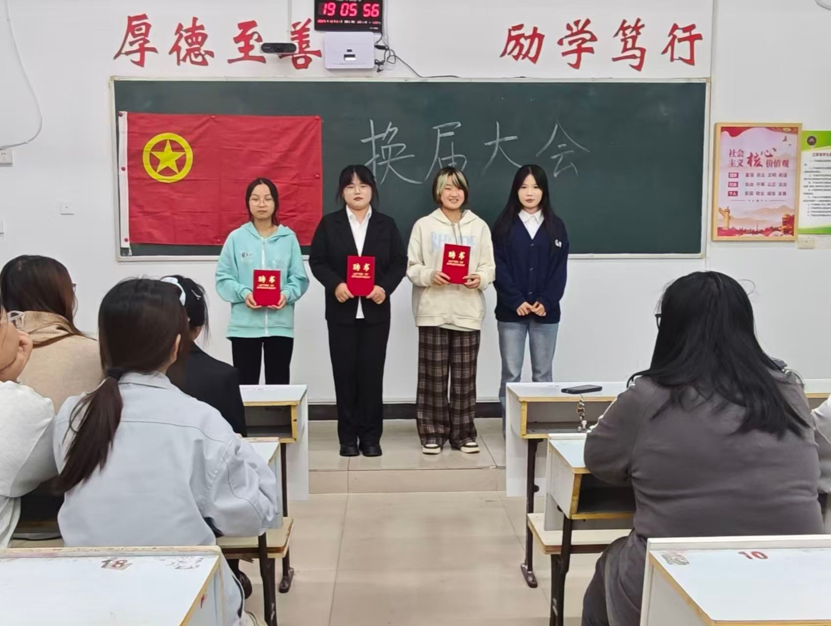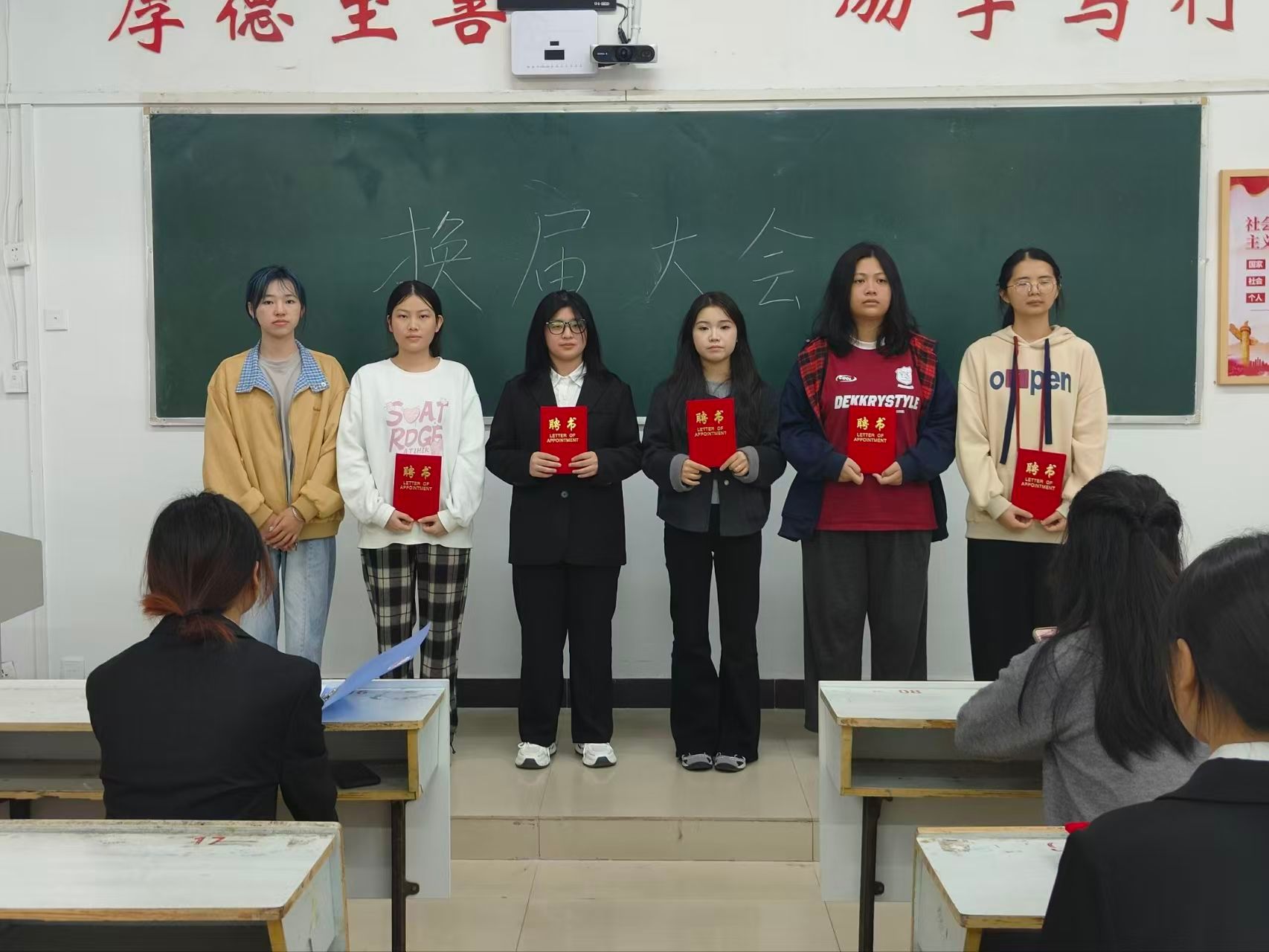 各教室大会在主持人的精彩开场中同步拉开帷幕,主持人介绍了本次活动核心目的——感谢24级部员过去一年的辛勤付出,完成工作平稳交接,并向到场人员表达诚挚欢迎;竞聘环节中,24级竞聘干事依次登台,以饱满热情和清晰思路分享个人经历、阐述对部门工作的理解与未来设想,展现出新时代青年的朝气与思考;接下来是颁发聘书环节,23级部长团成员为24级全体任期一年的部员逐一颁发聘书,以此肯定大家的参与热情与责任担当,各部门部员手持聘书合影留念,定格下意义非凡的瞬间;大会最后,各部门23级部长依次上台讲话,向获得聘书的24级部员表示热烈祝贺,结合共事经历分享工作感悟,衷心感谢24级部员在学生会岗位上的全情投入与不懈坚守,感谢大家用青春热血为部门发展筑牢根基、为学生会建设添砖加瓦,这份付出将成为学生会传承中的珍贵财富。