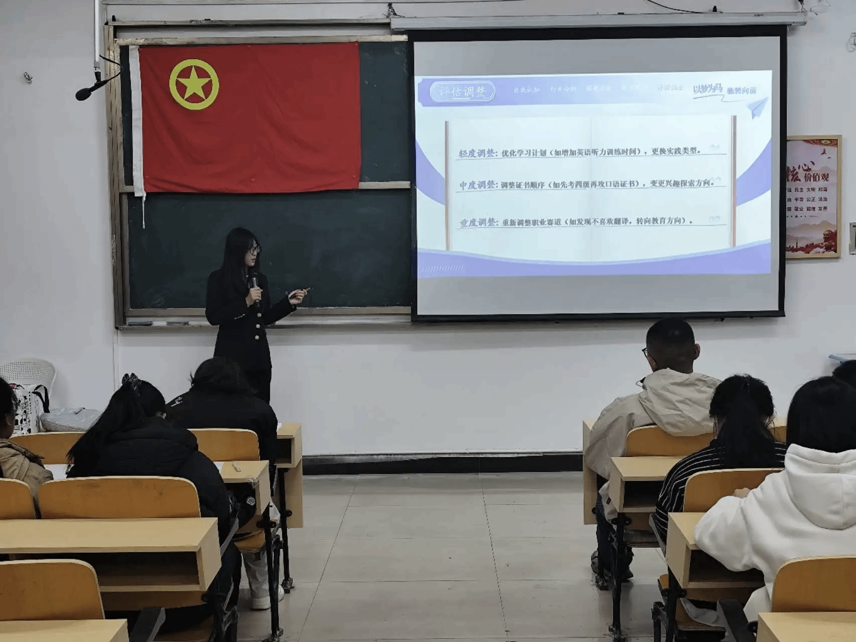为了让每一份青春都有清晰的航向,让专业素养与职业追求精准契合,让大学生在迷茫中锚定成长坐标,外国语学院第三届大学生职业生涯规划大赛如期而至,本次大赛于2025年12月5日19:00于英华楼3306教室拉开帷幕,莅临本次大赛的评委、嘉宾和老师分别是外国语学院党委书记刘佳萍,外国语学院学生商务英语支部书记何宇,外国语学院商务英语教研室主任胡斌、外国语学院学生会主席张藜语,外国语学院学生会副主席魏佳,外国语学院团委副书记张星宇,外国语学院团委书记助理黄莉,办公室主任柯丹妮及学生党支部张继涵,生态文明协会会长邓凌轩及各部门部长。这场大赛成为照亮青年职业发展之路的微光。