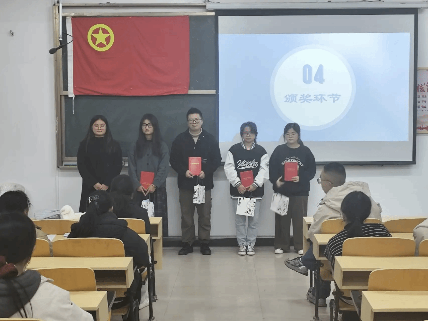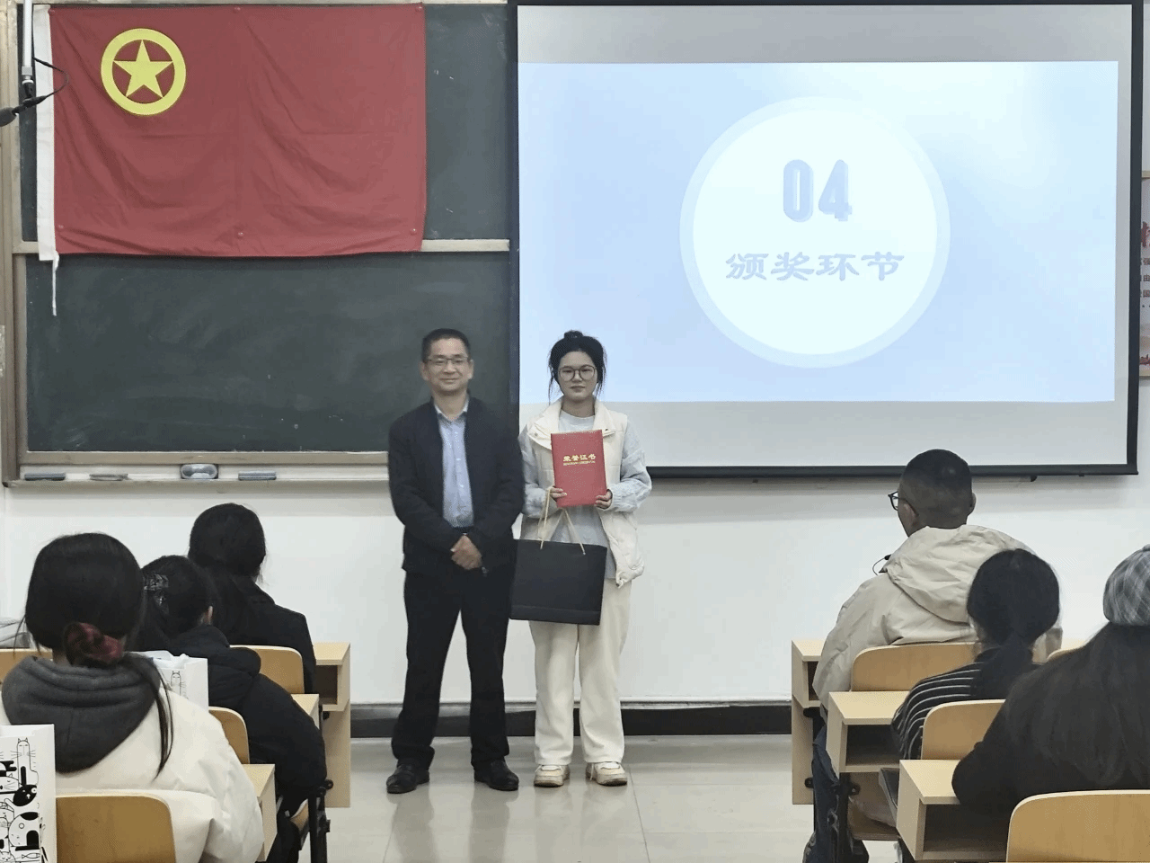 大赛伊始,主持人首先简要介绍了比赛规则与赛事流程,随后宣布大赛正式开始。大赛过程中,各位外语专业的学子正以参赛选手的身份,全程参与这场关于成长与规划的角逐,大赛流程清晰而严谨。从现场展示的从容呈现——他们以PPT为载体,条理清晰地阐述专业能力与职业目标的适配之道,尽显外语学子的语言功底与逻辑素养;到评委答辩的坦诚交锋——面对关于专业与实践平衡、职业规划动态调整的提问,他们从容应答、虚心聆听,在交流中完善认知,完成了一场从自我审视到职业认知升级的完整历程。待所有选手展示完毕,进入评委讲话环节,刘佳萍老师代表上台进行专业点评,既肯定了全体选手的用心准备与清晰思路,也针对性指出了部分选手存在的问题。随后,大赛进入颁奖环节,主持人逐一宣读一等奖、二等奖、三等奖的获奖名单,受邀评委与嘉宾依次上台,为获奖选手颁发荣誉证书与奖品,与选手们亲切合影留念,闪光灯下,每一份荣誉都承载着选手们的努力与付出,也传递着对青年学子的期许与鼓励。颁奖结束后,各评委嘉宾与参赛选手及相关负责人员合影留念,留下了深刻的记忆。