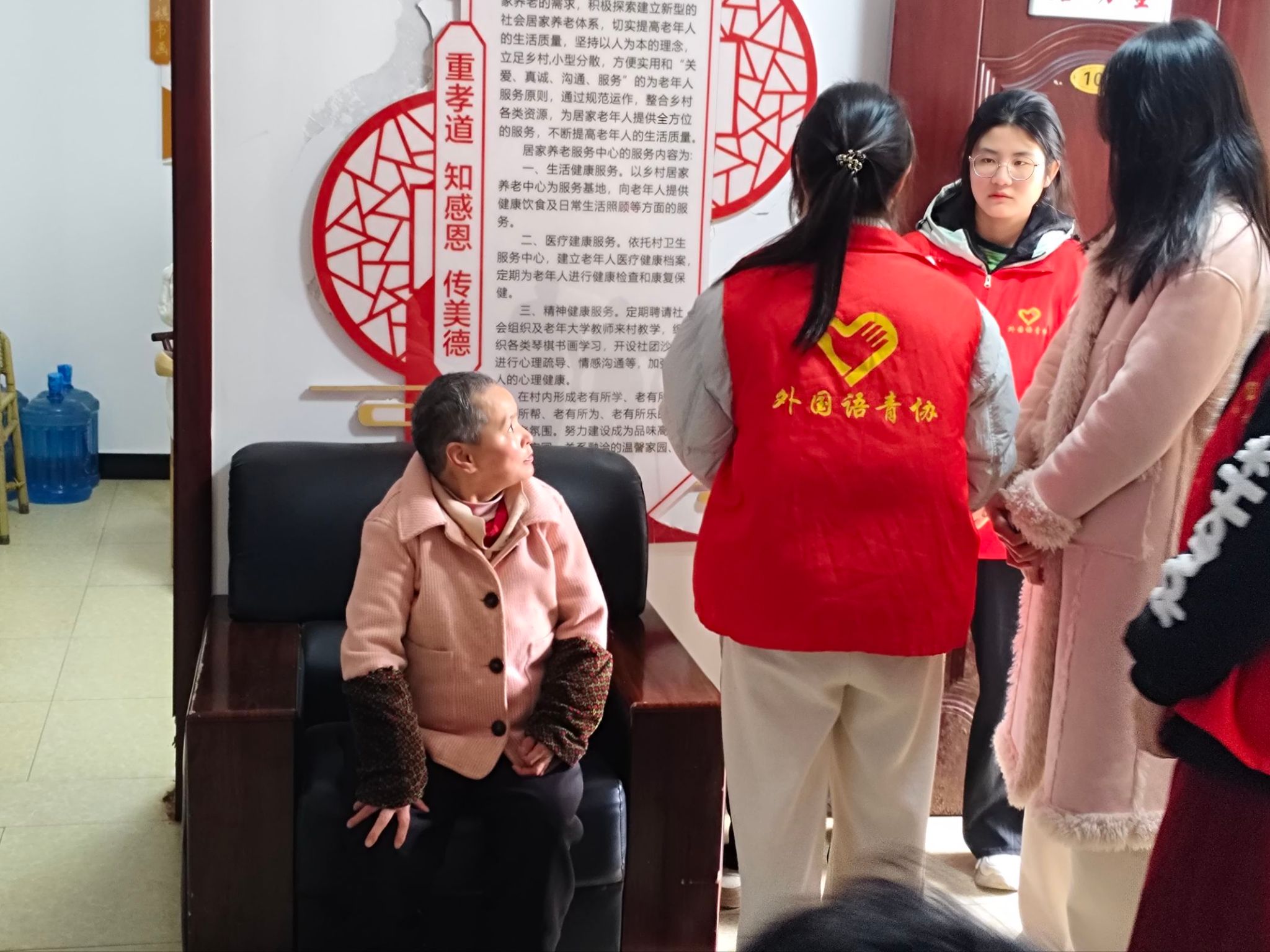 为弘扬志愿服务精神,传递青春温暖,2026年3月21日上午9:00至11:00,外国语学院青年志愿者协会在安源镇敬老院组织开展了“爱暖夕阳,情系敬老”主题志愿服务活动。本次活动由学院青协24级理事会成员及部分25级志愿者共同参与。