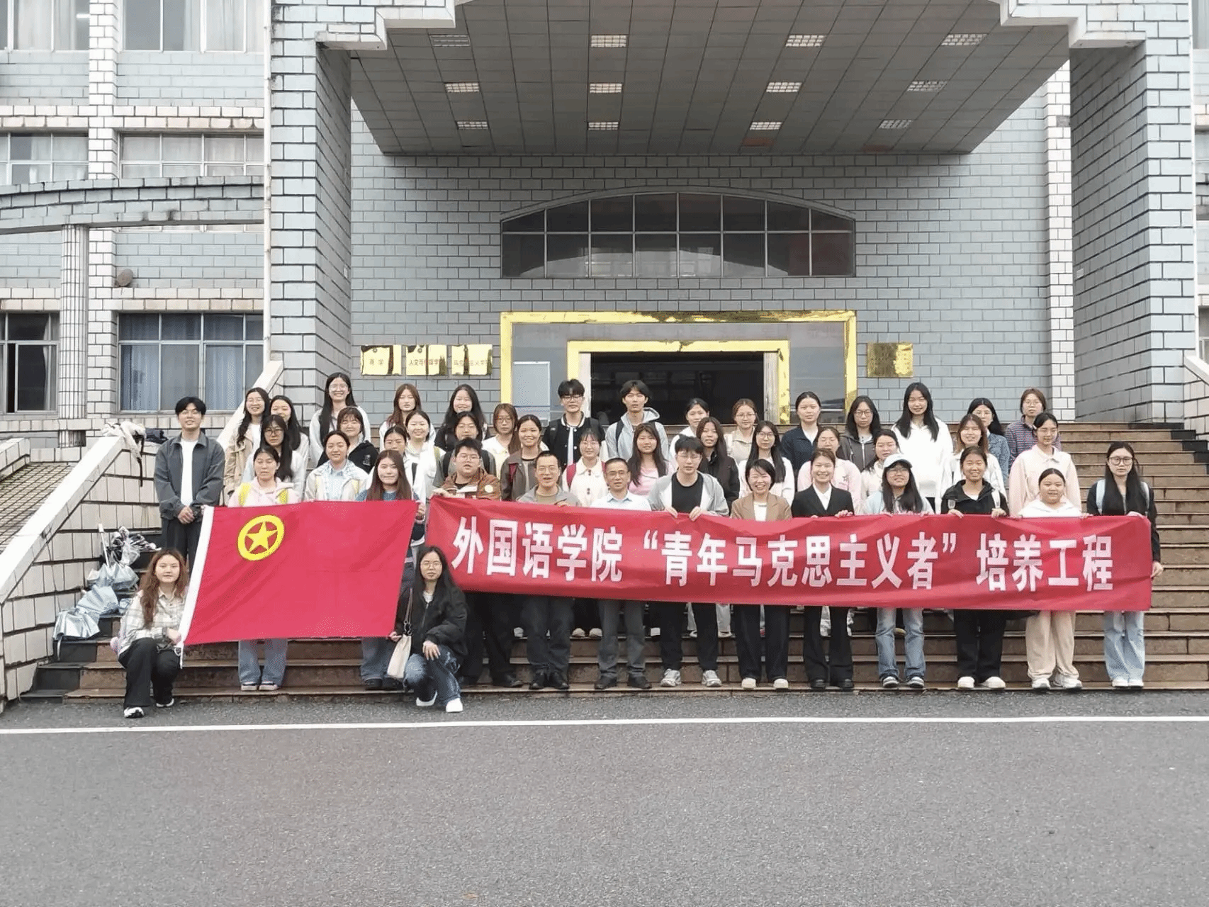 仪式圆满落幕,全体人员移步至教学楼前合影留念。镜头定格下青年学子昂扬奋进的身影,也记录下本次青马工程开班仪式的顺利收官。合影结束后,全体学员备受鼓舞,纷纷表示将以此次开班为新起点,不忘初心使命,坚定理想信念,以实际行动践行青年担当,努力成长为堪当民族复兴重任、展现外院青年担当的时代新人。