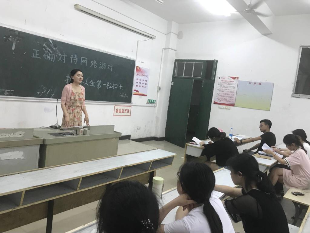 外国语学院16英本2班于2018年5月16日在英华楼3331,开展“正确对待网络游戏,扣好人生第一粒扣子”的主题班会。会议由16英本2班班长邱晓雯主持,全班同学以及班主任参与。