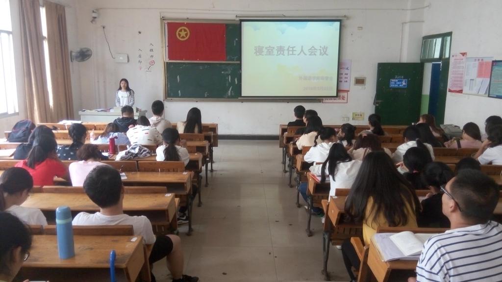 近期为了落实寝室的各项工作能够顺利实施,外国语学院于2018年5月23日中午12:50在英华楼3306召开了寝室责任人会议,本次会议由外国语学院宿管会主任张健红主持召开。