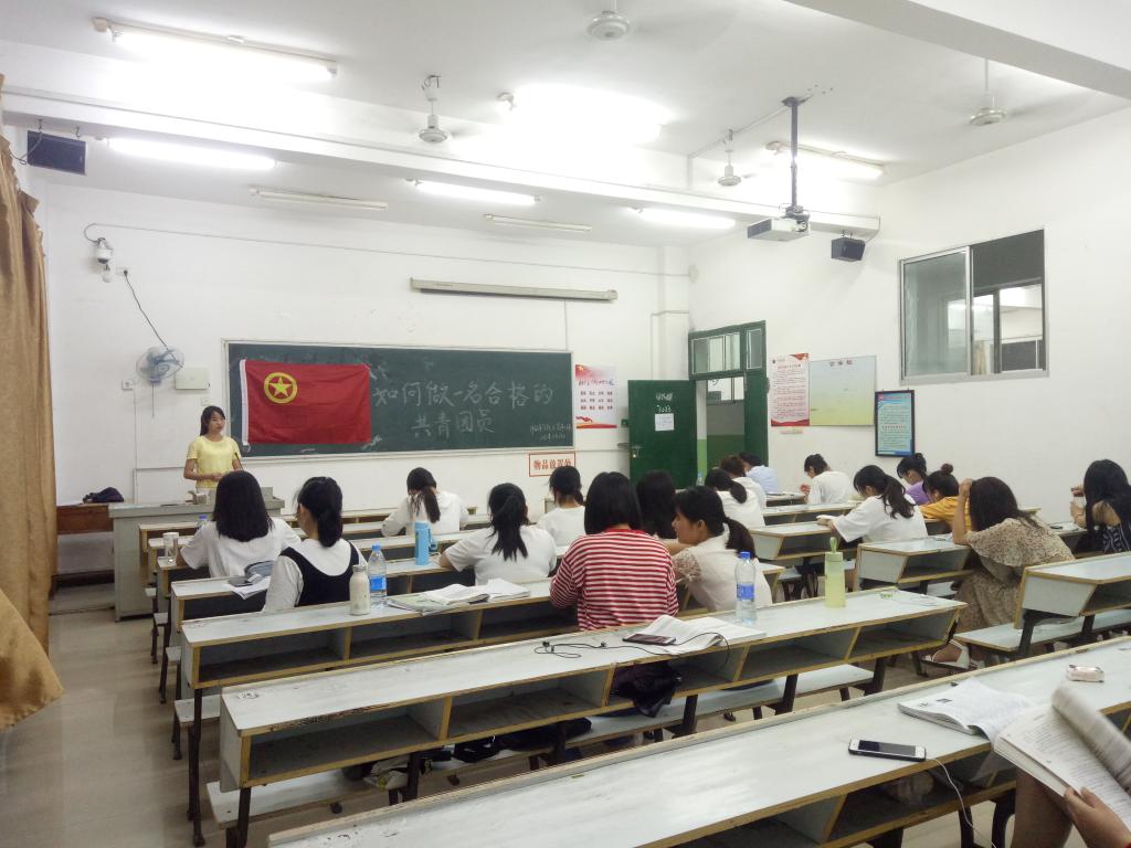 为积极响应党和国家的号召,学习十九大精神。让班级团员产生争做“有理想,有道德,有文化,有纪律”的新时代青年的动力,激发班上同学建设“富强、民主、文明、和谐、美丽”的社会主义现代化强国的热情,彰显新时代大学生的精神风貌,外国语学院16商本1班于5月18日开展以“如何做一名合格的共青团员”为主题的团课,此次团课由团支书魏婷主持,全班同学参与。