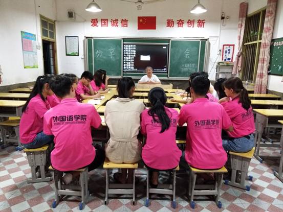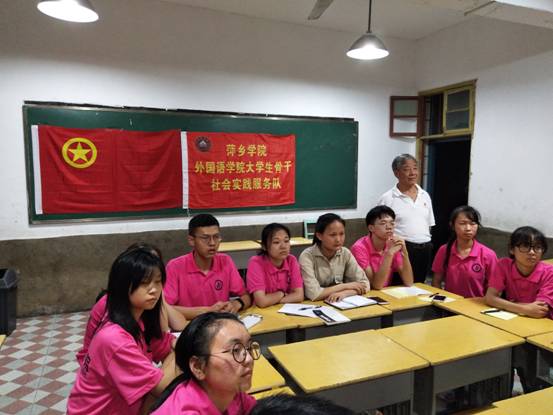 2018年7月12日晚上8时整,六市乡中小学优秀教师付玉生为外国语学院暑期“三下乡”服务队队员举办了一次分享会,会议主要由付老师主讲,分享他几十年来的教学经历以及人生真谛。