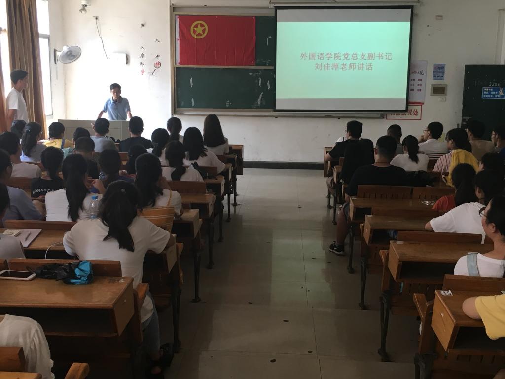 为迎接即将前来学校报到的新生,并作好充分的迎新准备工作,避免迎新干部在迎新时可能出现的问题,2018年9月5日,外国语学院于3306召开了迎新动员大会。莅临本次大会的有外国语学院党总支副书记刘佳萍,团总支书记彭侃,17级辅导员冷全宝,18级辅导员甘武以及团总支学生分会主席张奇。