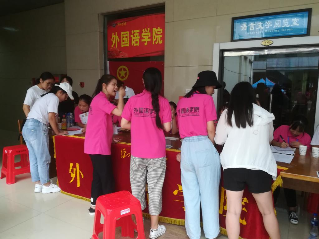 新学期,新气象,18级新生陆续走进萍院大家庭。为迎接新生们的到来,2018年9月7日,外国语学院部分同学于图书馆开展接新活动。每位同学都以饱满的热情为新生们提供最周到的服务。
