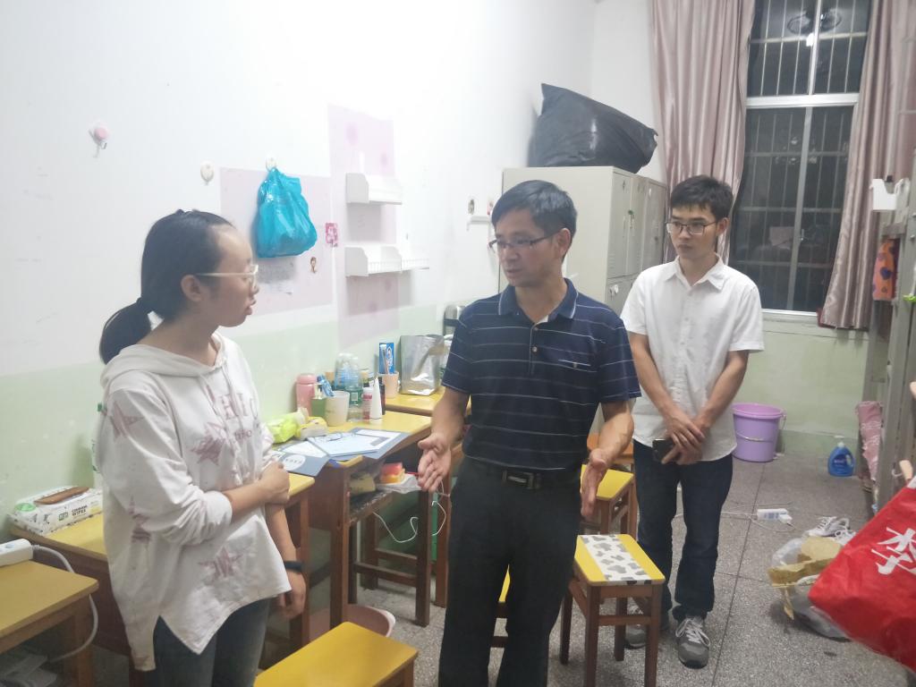 为了欢迎新生入学,及时了解新生到校情况,2018年9月8日晚,外国语学院党总支副书记刘佳萍,17级辅导员冷全宝,18级辅导员甘武前往宿舍慰问新生。